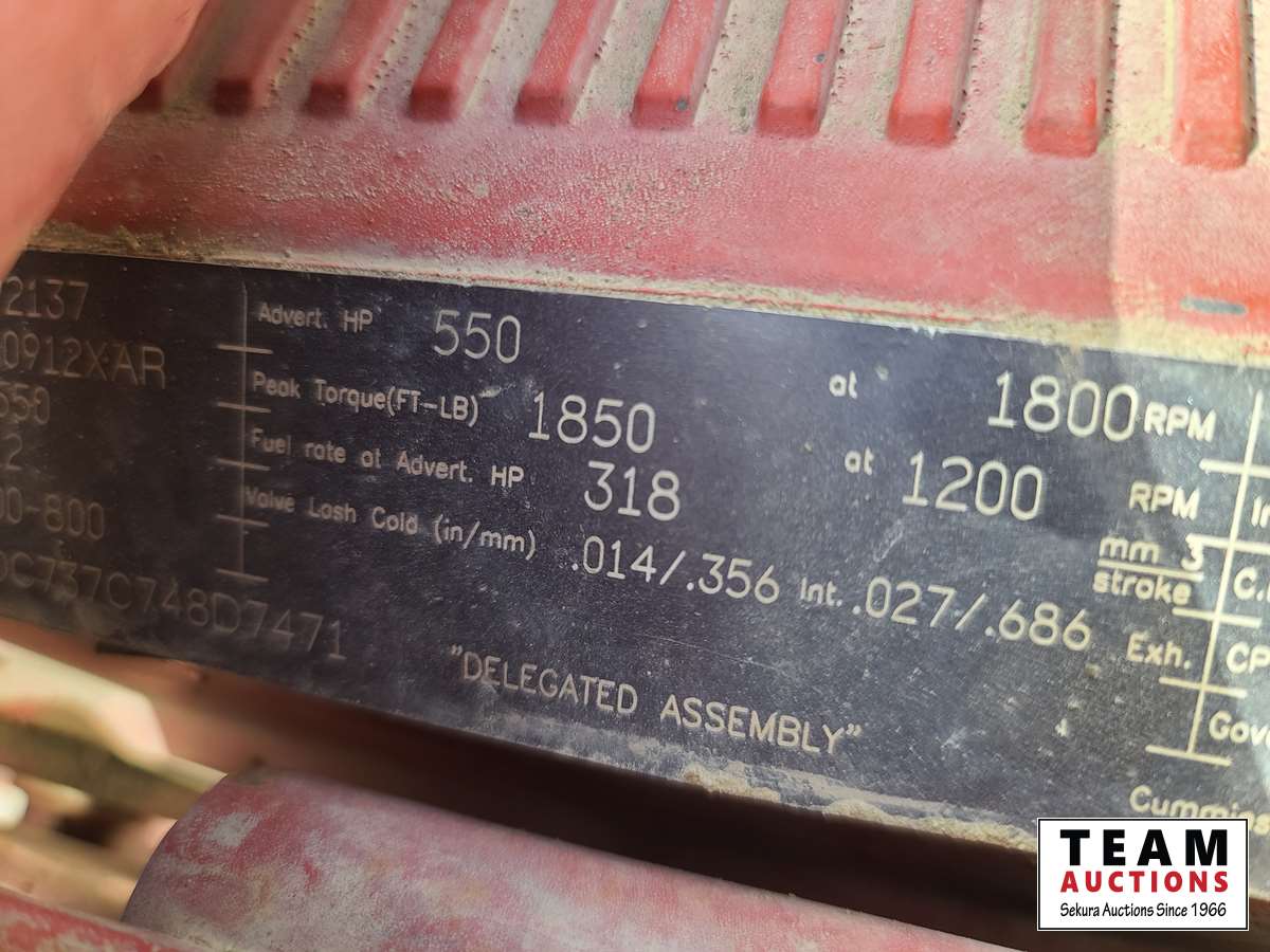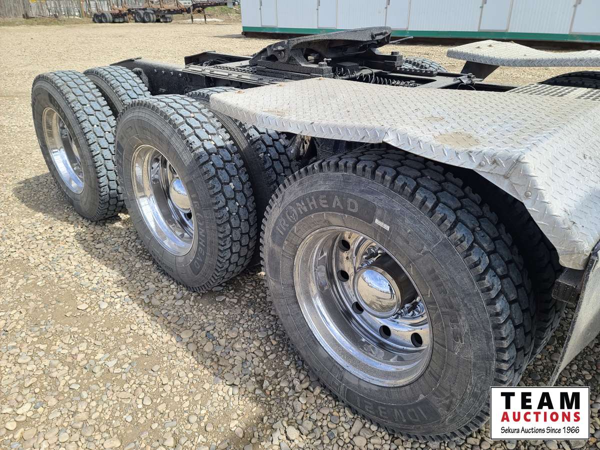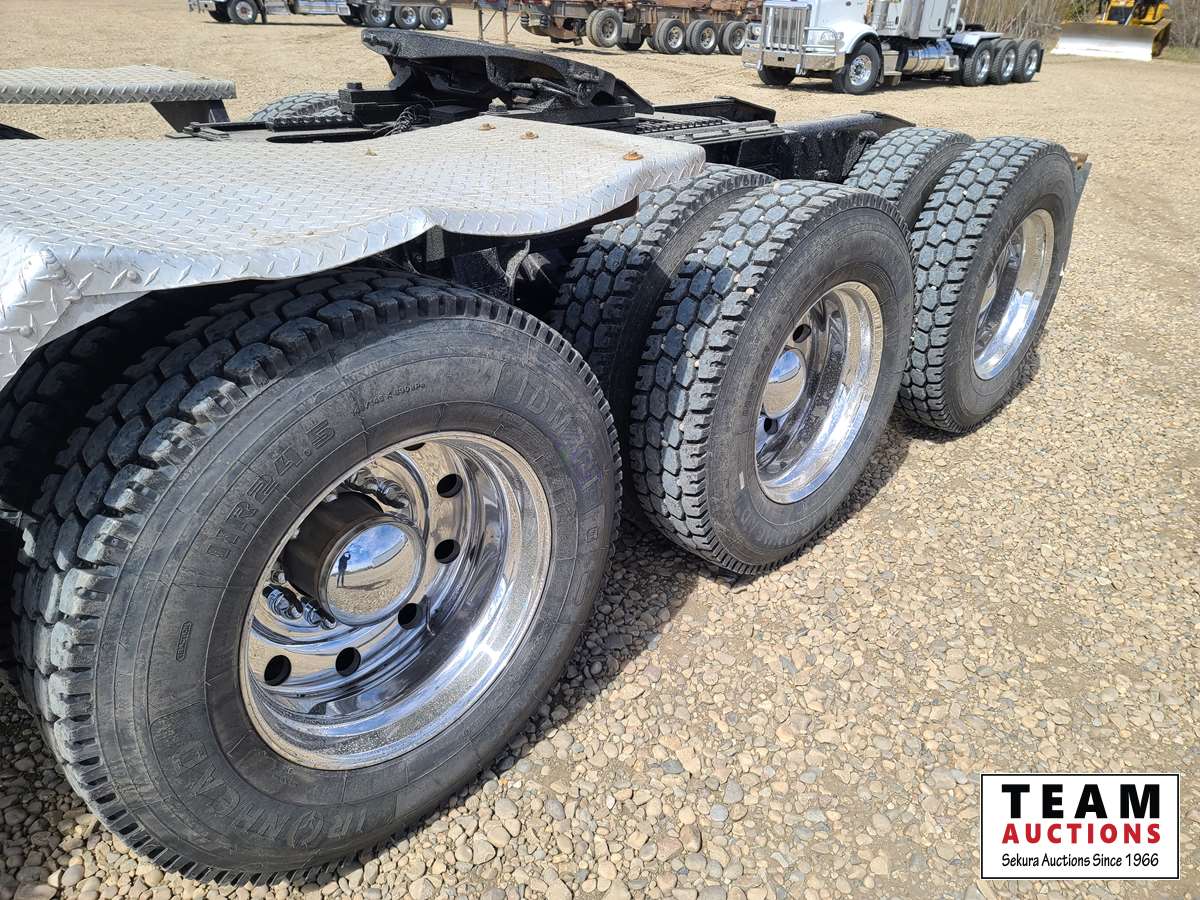 Cummins ISX, 550 HP, 6 cylinder, diesel, engine brake, Eaton Fuller RTLO18918B tranmission, NeWay air ride suspension, 20,000 lb front, T69170 HP 69,000 lb rears, full locking differentials, 4.30 ratio, 267 inch WB, 38. In sleeper, SI onboard 9100QC logging scales, aluminum front bumper & logging headache rack, Webasto engine heater, aluminum wheels, 385/65R22.5 front, 11R24.5 rear