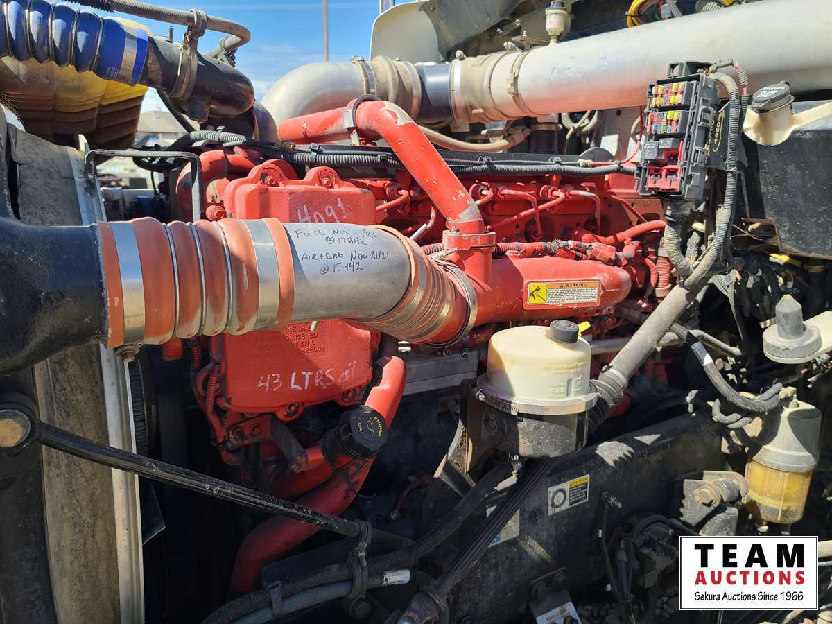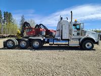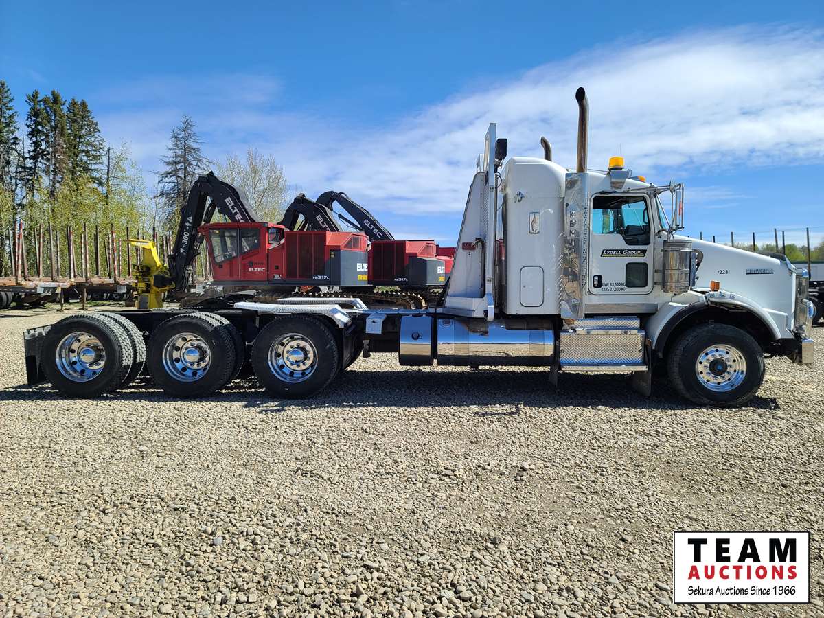 Cummins ISX, 550 HP, 6 cylinder, diesel, engine brake, Eaton Fuller RTLO18918B tranmission, NeWay air ride suspension, 20,000 lb front, T69170 HP 69,000 lb rears, full locking differentials, 4.30 ratio, 267 inch WB, 38. In sleeper, SI onboard 9100QC logging scales, aluminum front bumper & logging headache rack, Webasto engine heater, aluminum wheels, 385/65R22.5 front, 11R24.5 rear