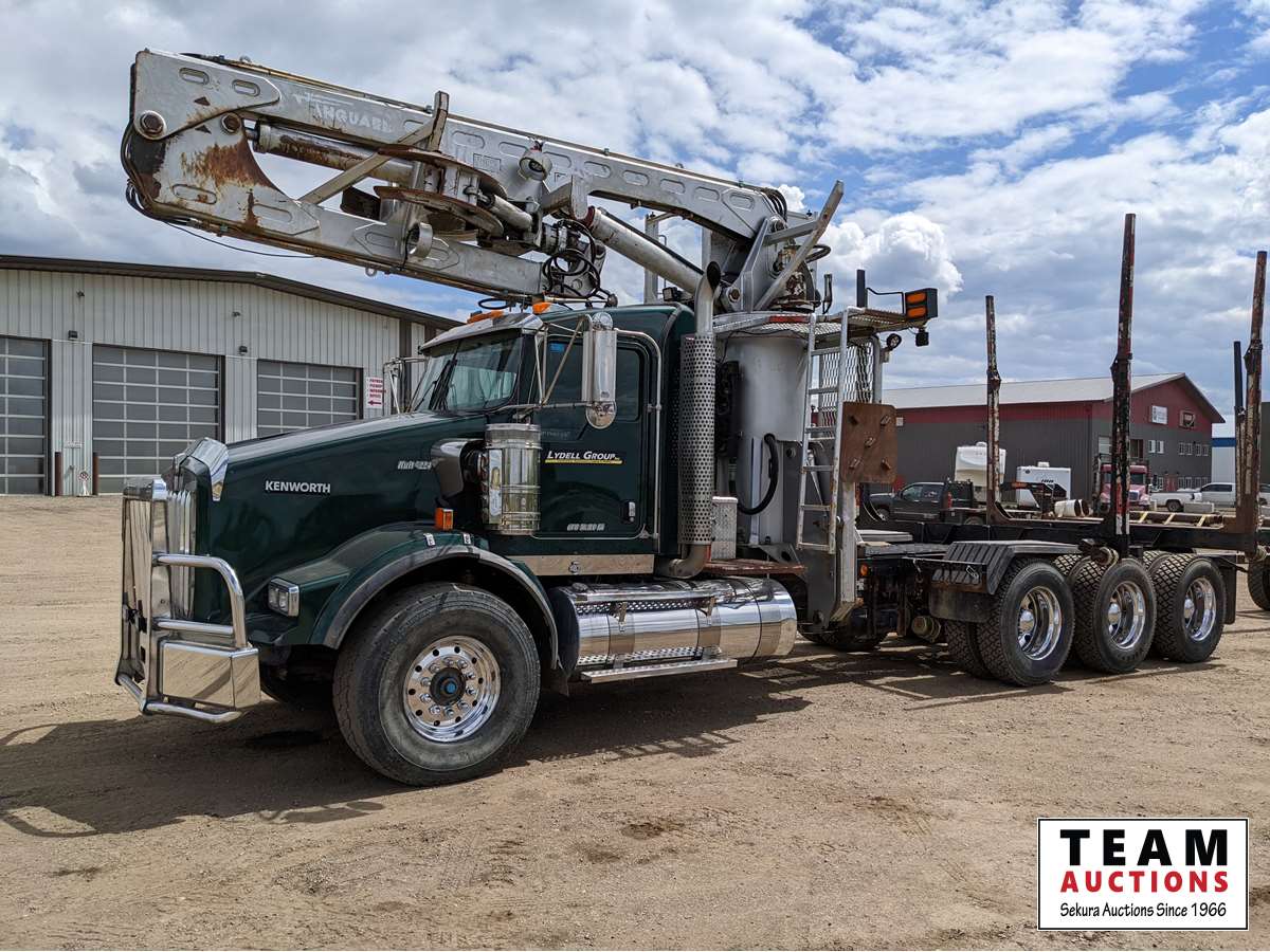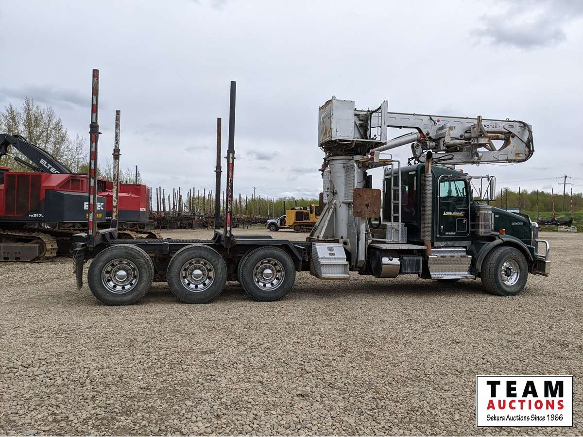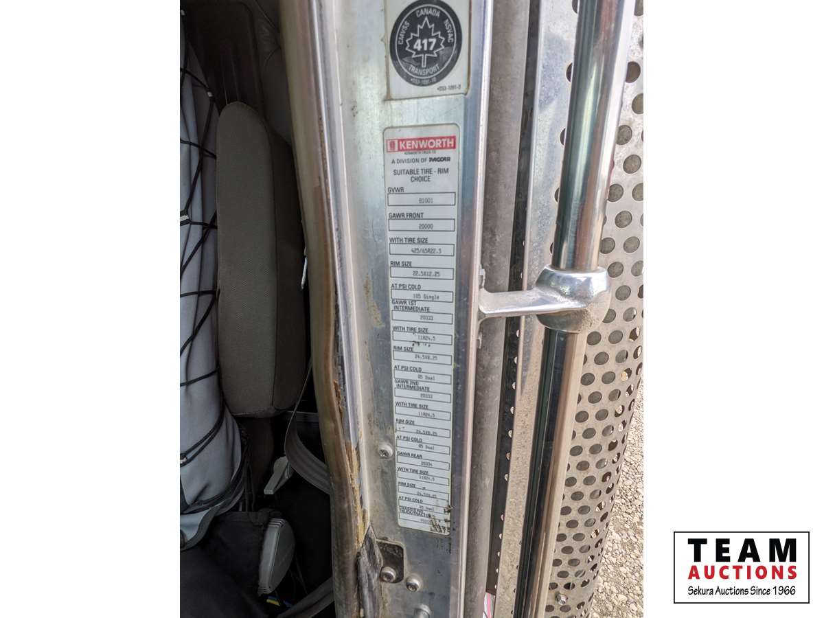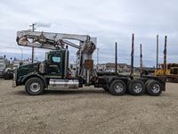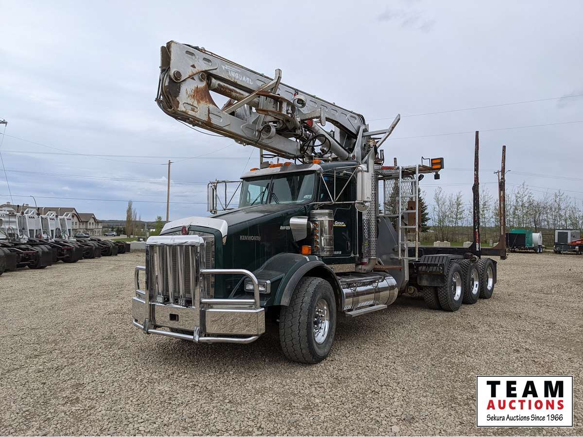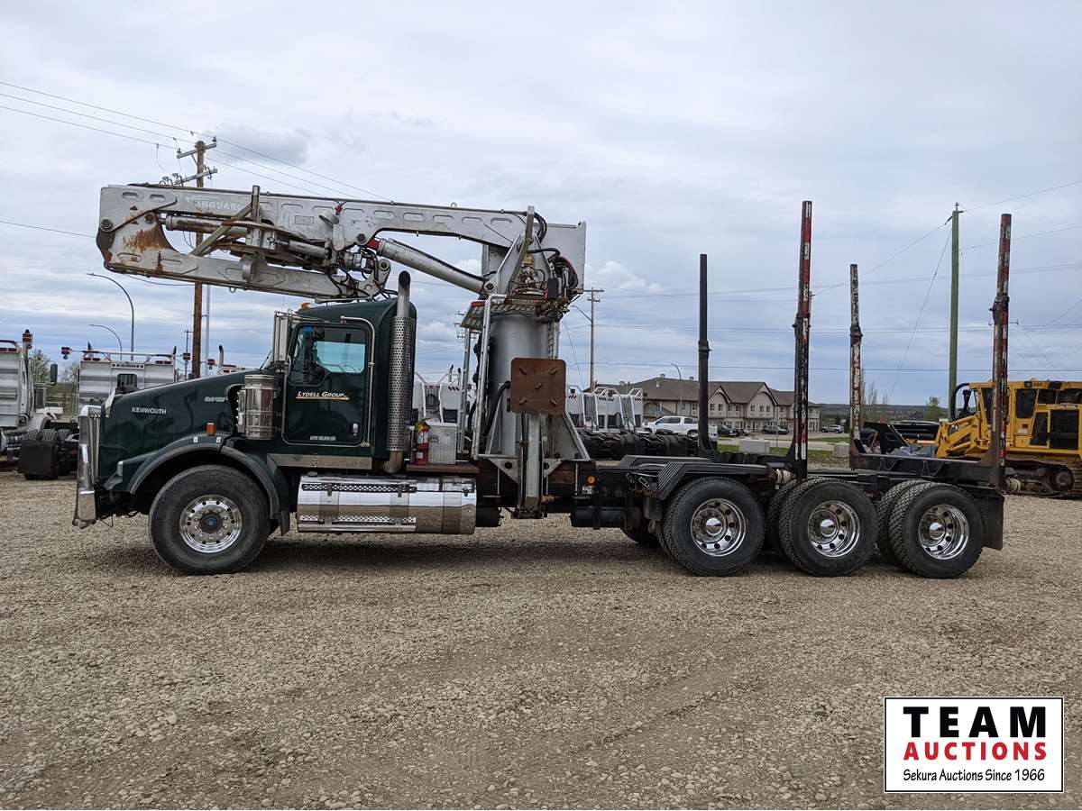 Cummins ISX, 600 HP, 6 cylinder, diesel, engine brake, Eaton Fuller RTLO18918B tranmission, Kenworth 8 bag air ride suspension, 20,000 lb front, T69170 HP 69,000 lb rears, full locking differentials, 4.10 ratio, 270 inch WB, SI onboard 9100QC logging scales, aluminum front bumper & logging headache rack, aluminum wheels, Webasto engine heater, 385/65R22.5 front, 11R24.5 rear