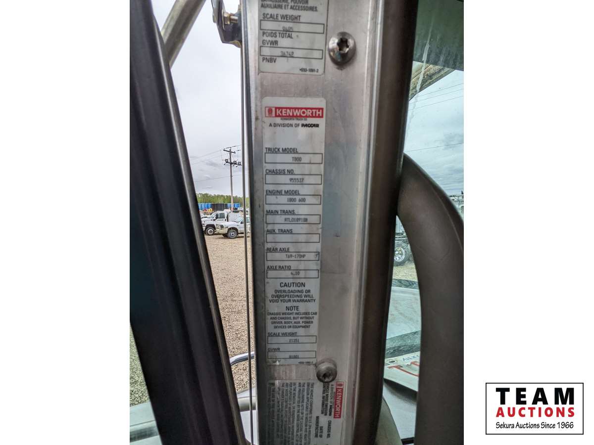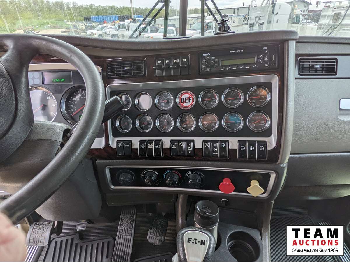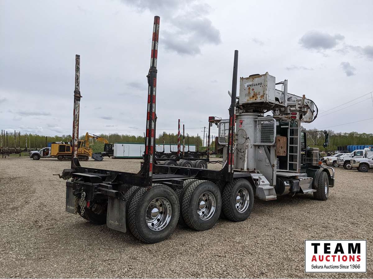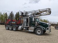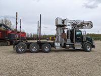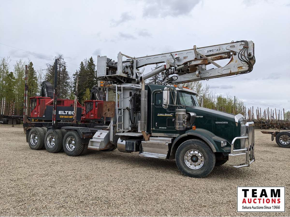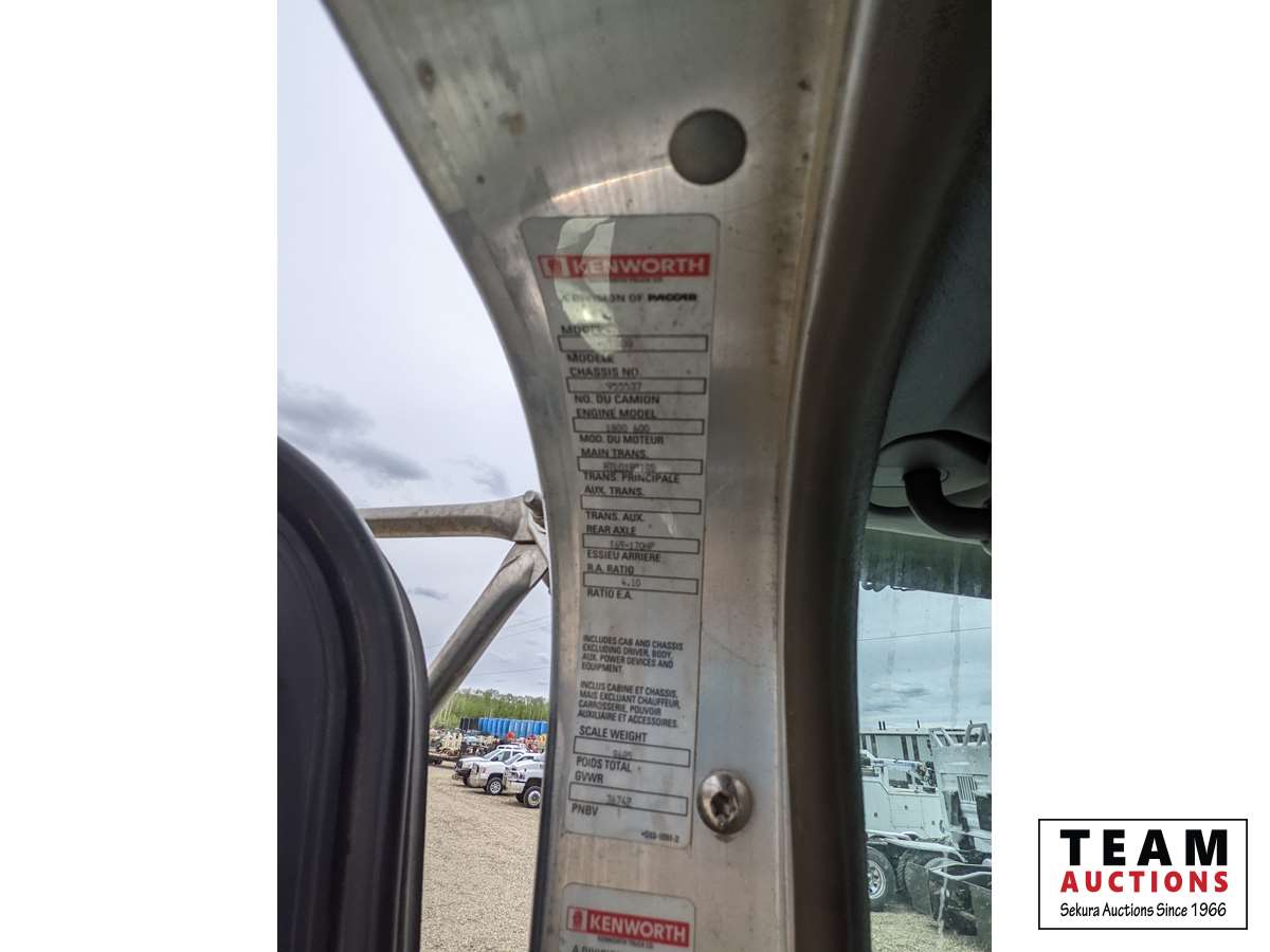 Cummins ISX, 600 HP, 6 cylinder, diesel, engine brake, Eaton Fuller RTLO18918B tranmission, Kenworth 8 bag air ride suspension, 20,000 lb front, T69170 HP 69,000 lb rears, full locking differentials, 4.10 ratio, 270 inch WB, SI onboard 9100QC logging scales, aluminum front bumper & logging headache rack, aluminum wheels, Webasto engine heater, 385/65R22.5 front, 11R24.5 rear