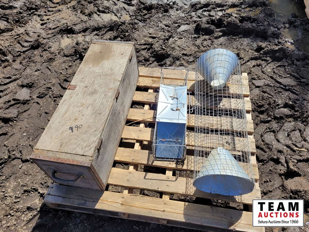 248 (2) Live Traps & Wooden Box with Concrete Tools