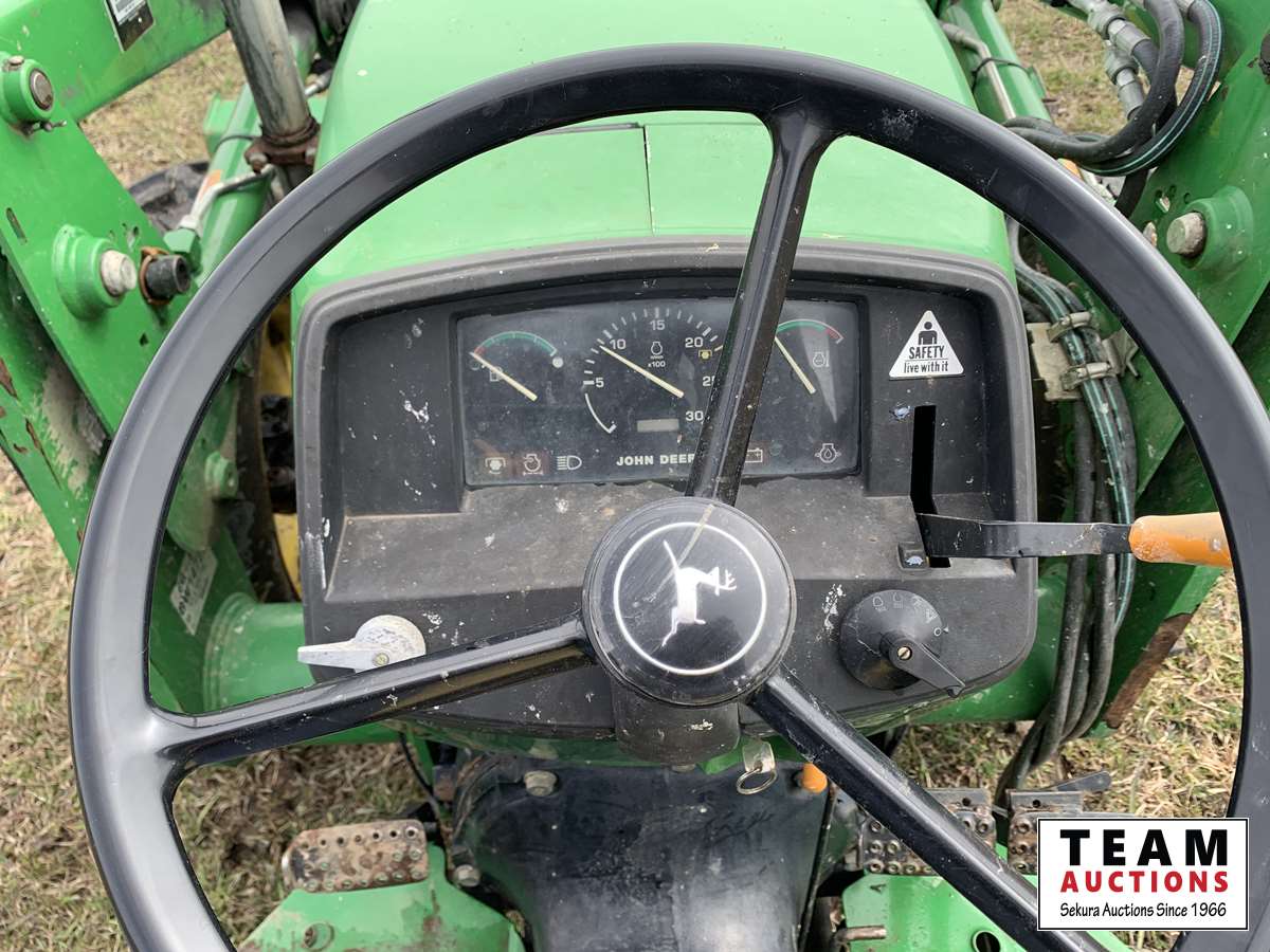 53 HP, 2.9 L 3 cylinder diesel, 8 speed partial shift, 522 loader, 84 inch bucket, 540 PTO, 9.5-24 fronts, 16.9-28 rears, hrs meter not showing