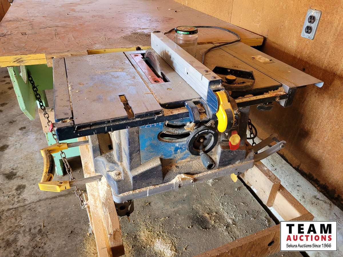 29 Mastercraft 14 Inch Table Saw & Vise Attached to 4 X 8 Table