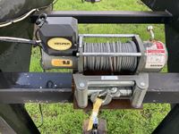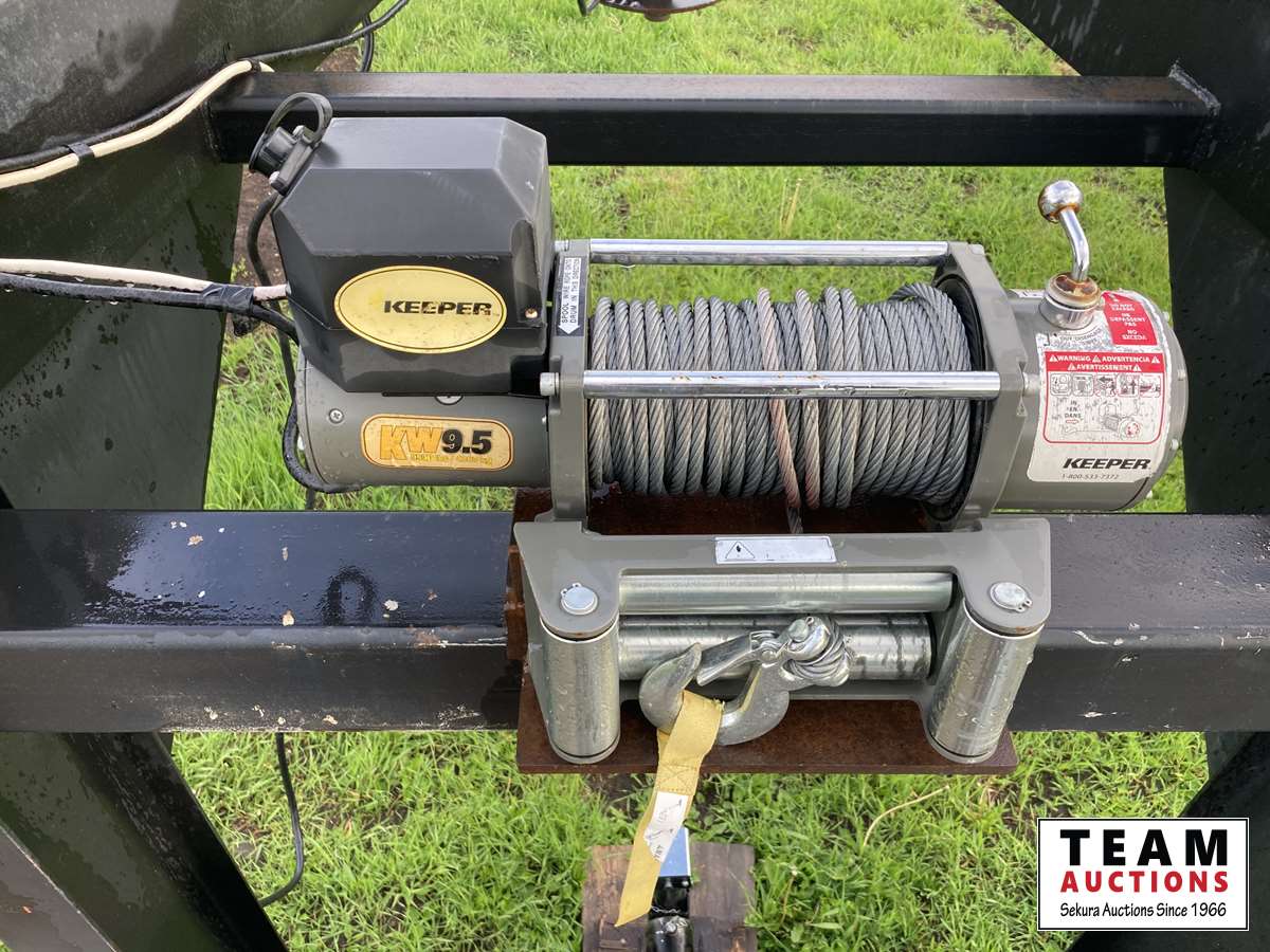Beaver tail ramps, removable side racks and wooden walls, 7000 lb axles, 9000 lb 12 volt winch, 7.50-16 L T