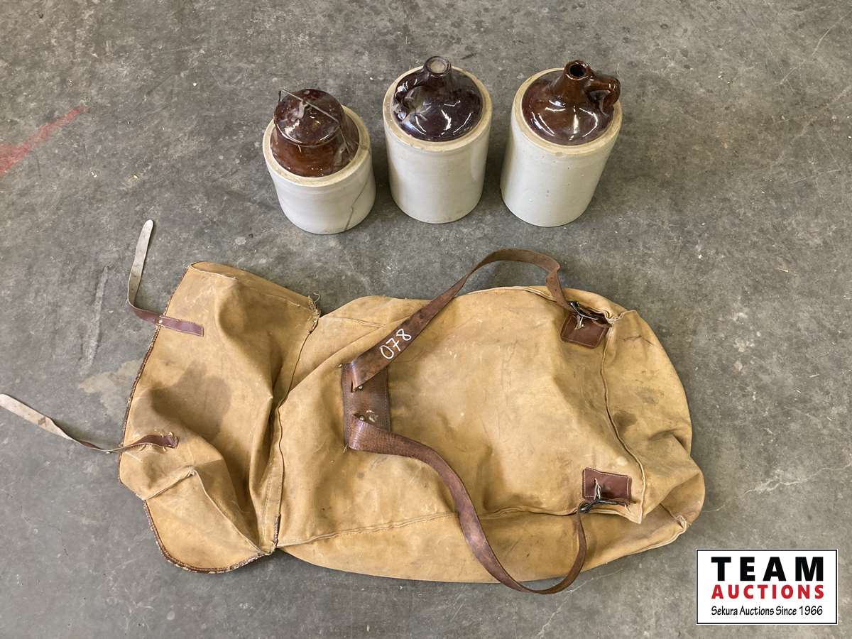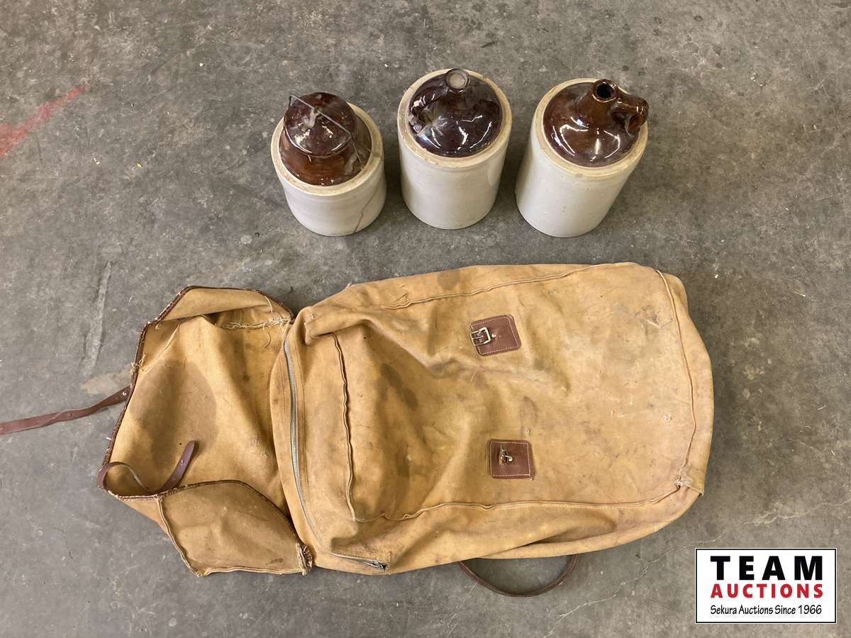 24 (3) Glass Jugs & Backpack