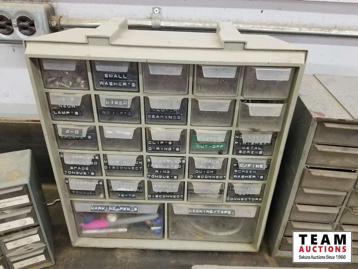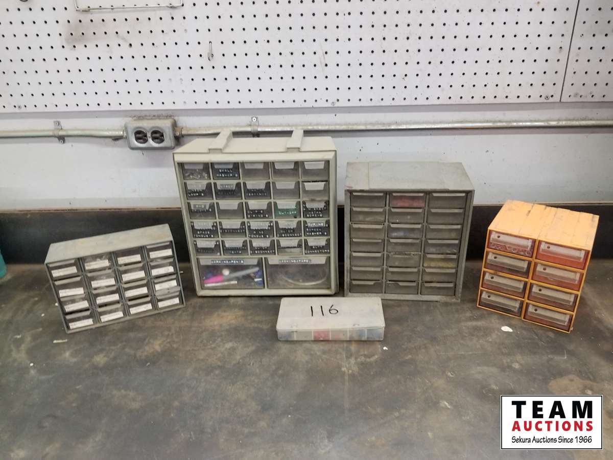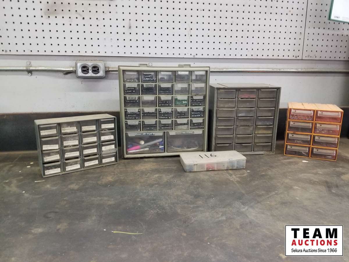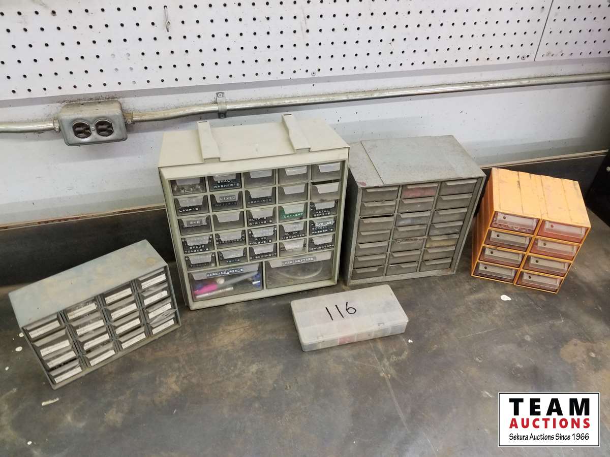 165 Assortment of Small Bolt Bins with Contents