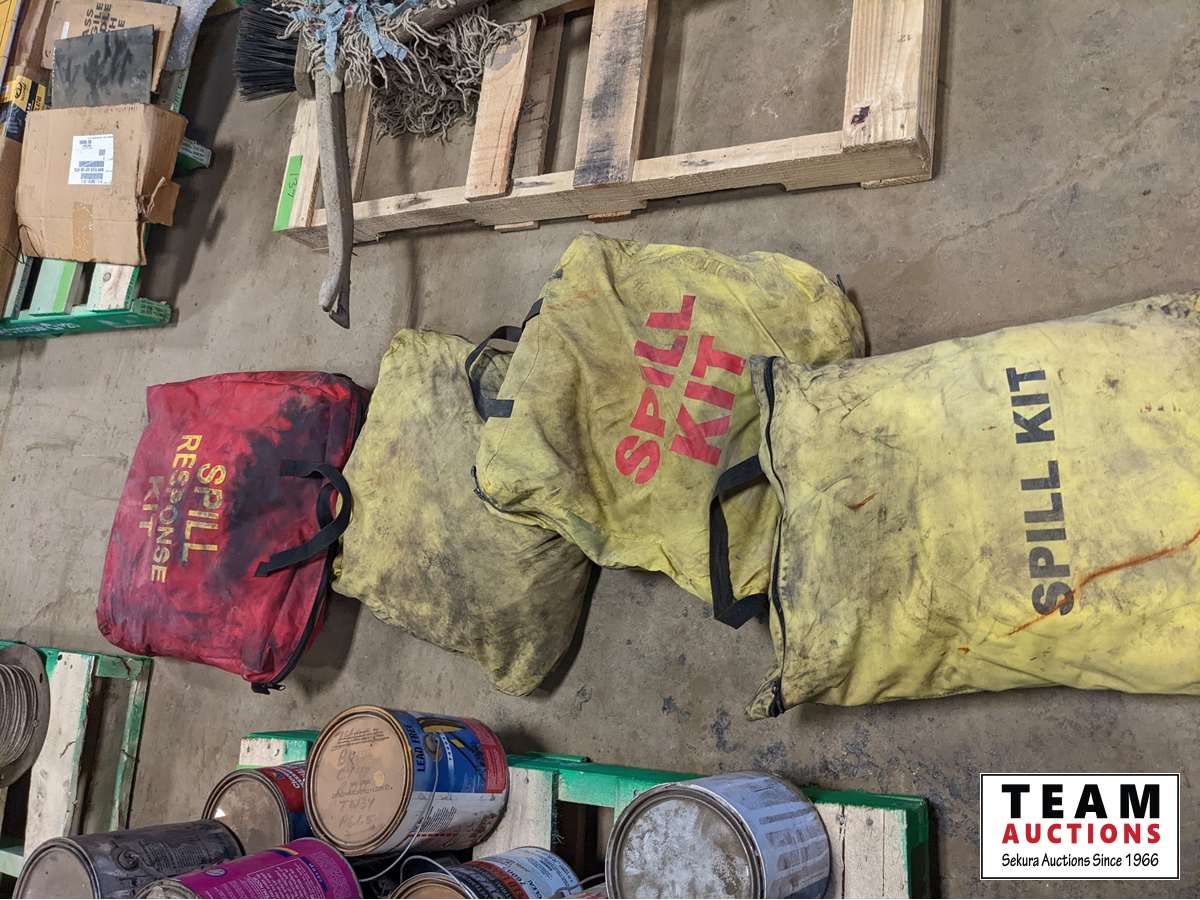 (4) spill kits, pump pack, broom, squeegee, mop bucket