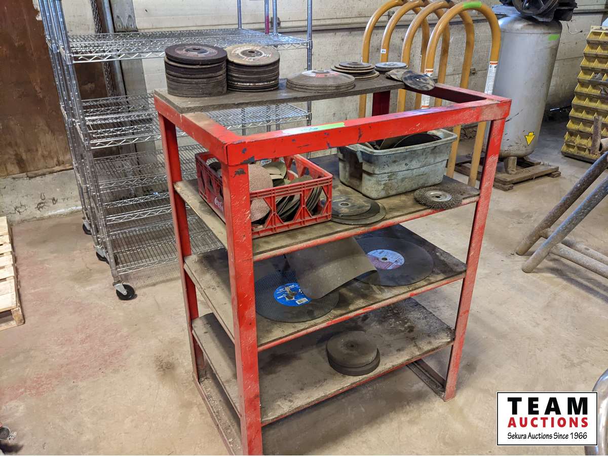 359 Custombuilt Metal Shelf Unit W/ Qty of Grinding Discs