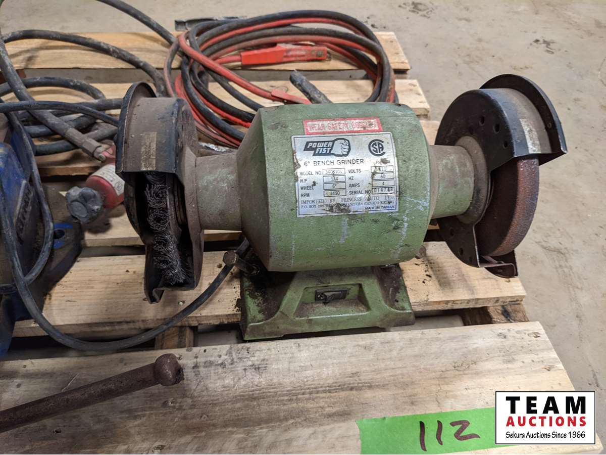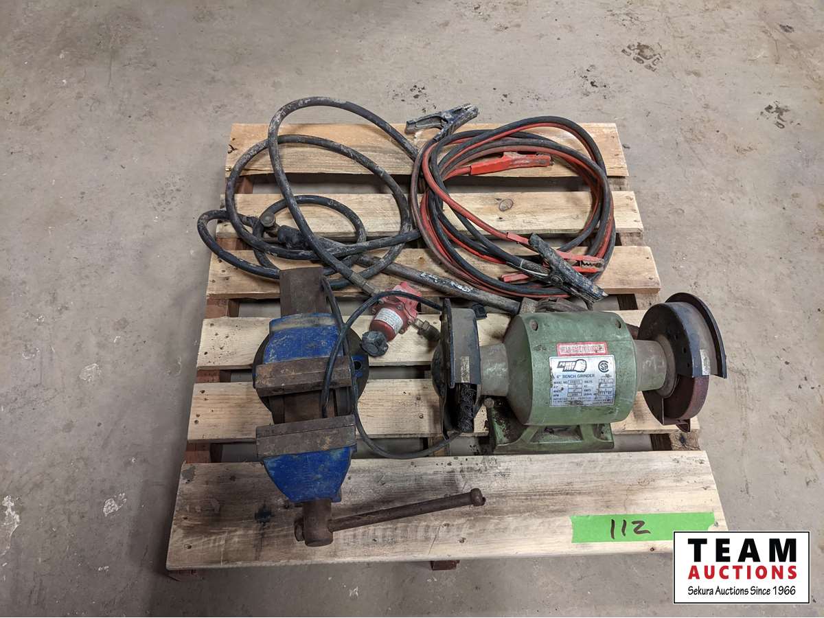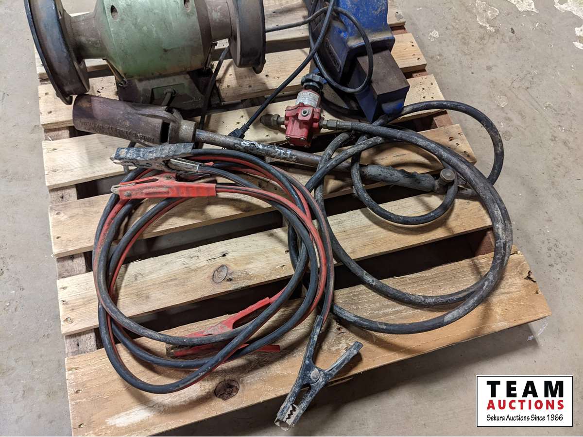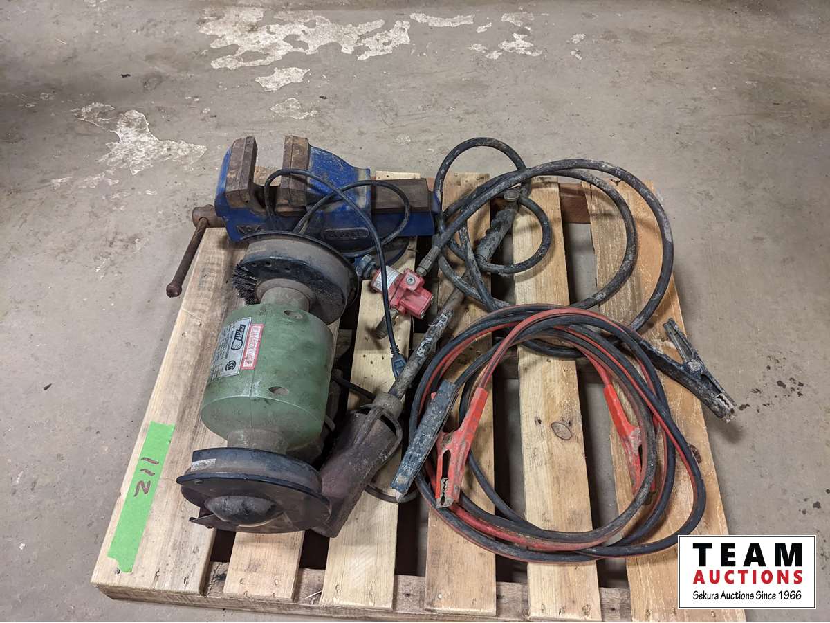 4.5 inch Record Vise, booster cables, Powerfist 6 inch bench grinder, Tiger torch