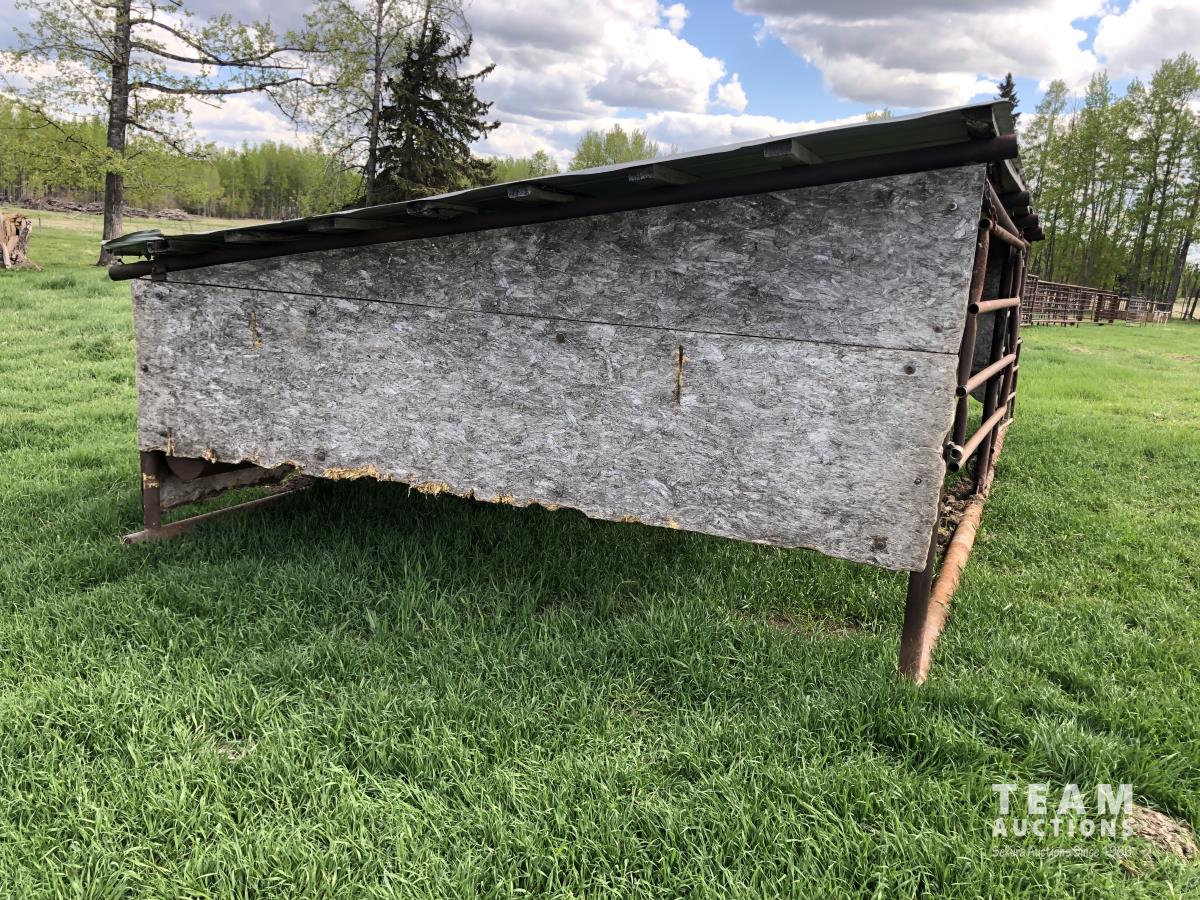 with rear grain bunk, creep gates, pipe frame, metal roof