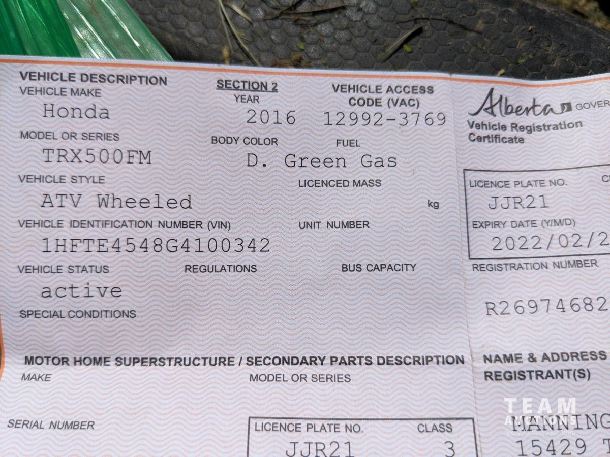 416 2016 Honda TRX500FM 4X4 Quad