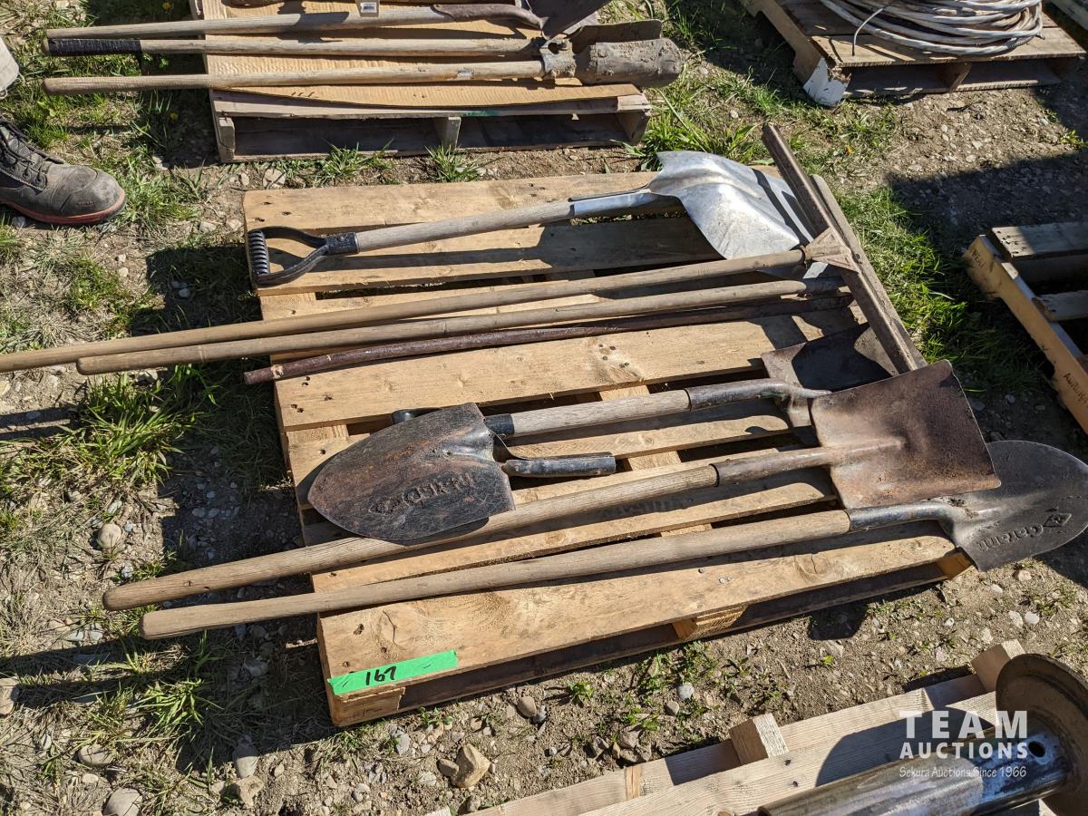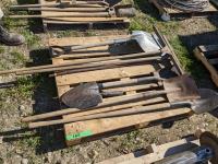 140 Assorted Shovels, Pry Bar & Squeege