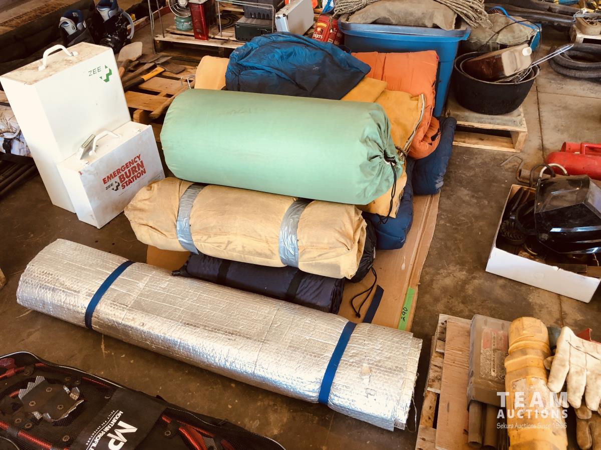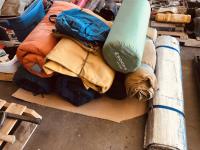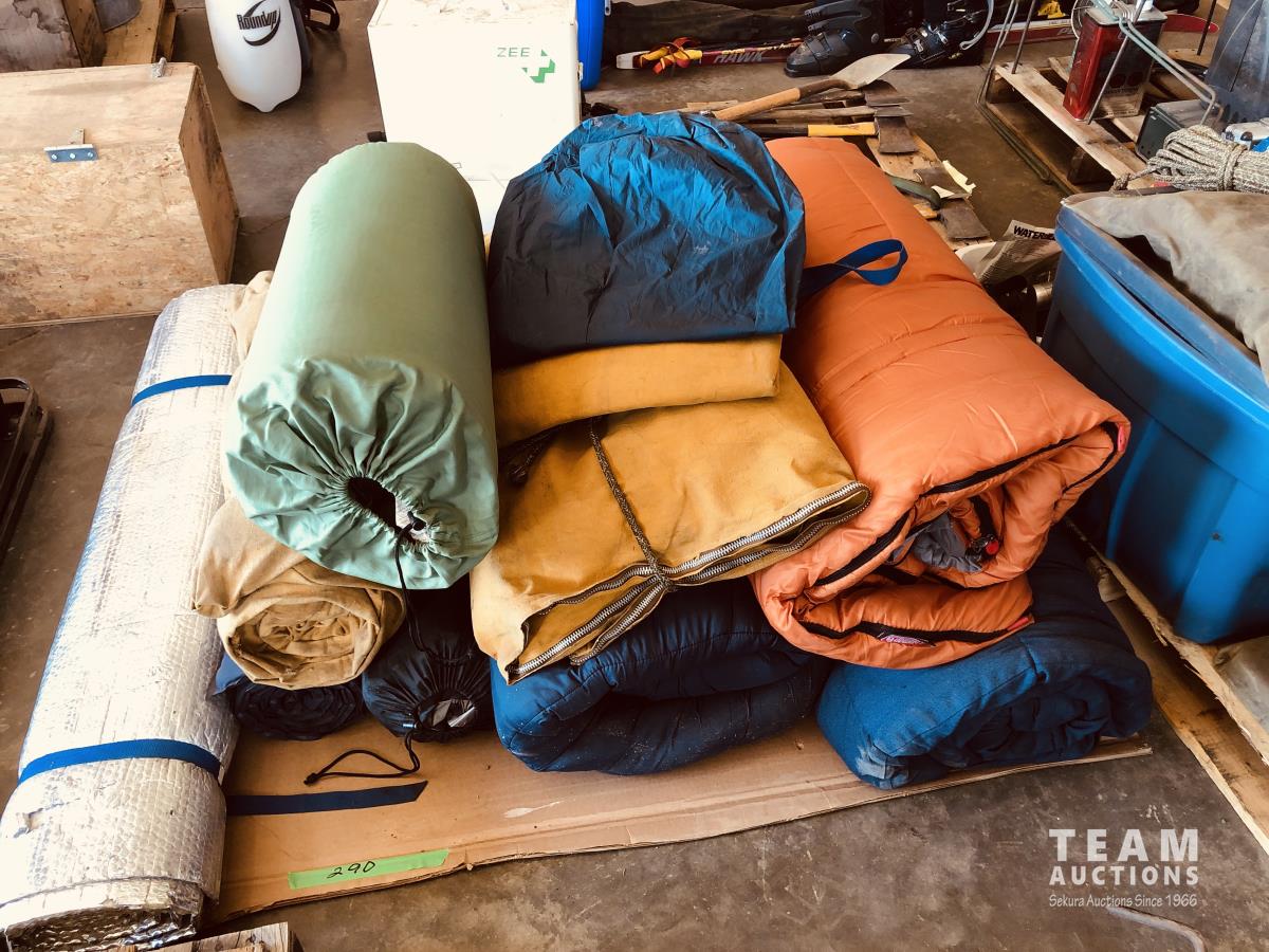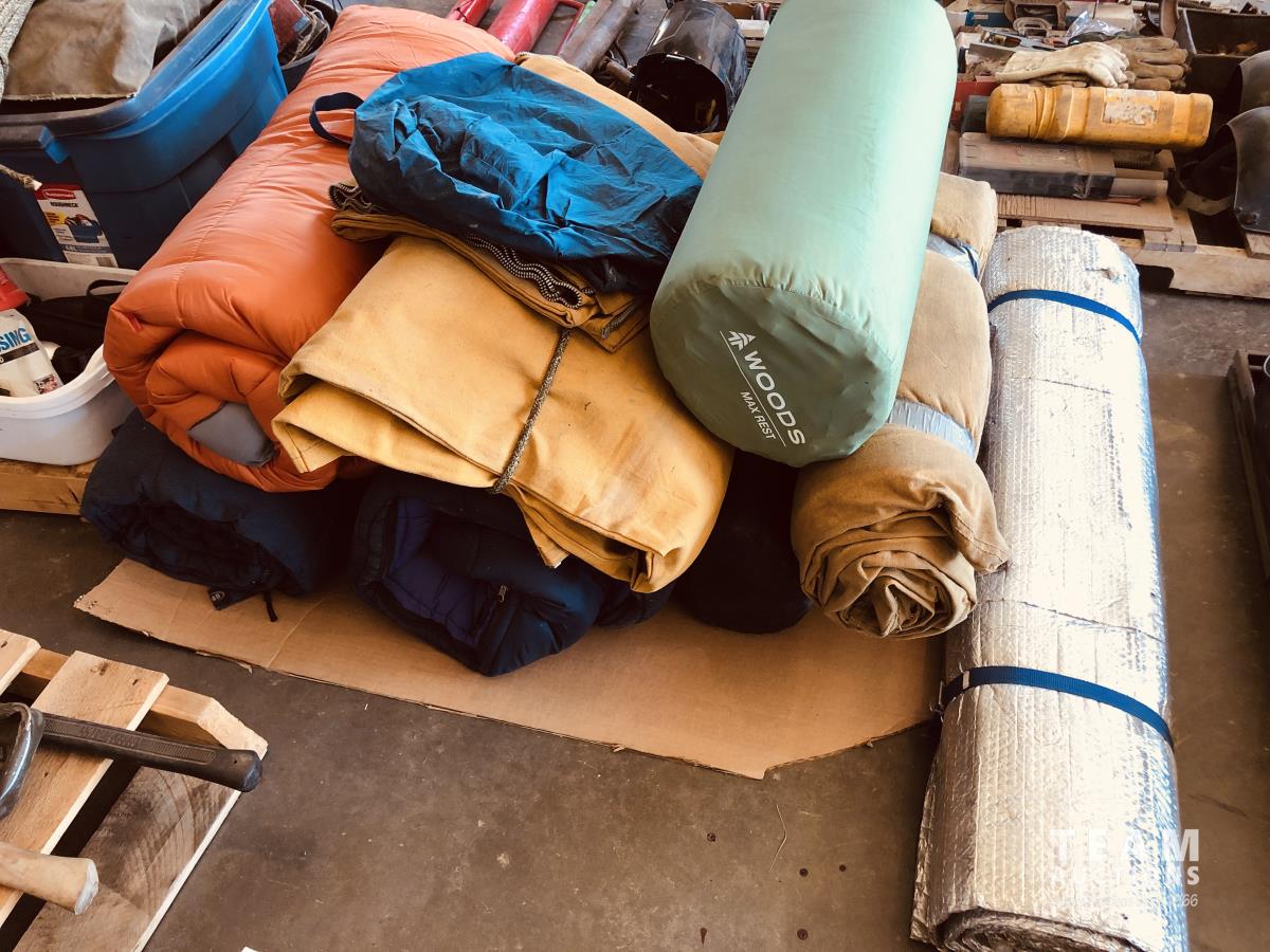 (3) Air mattresses, canvas bed roll, (3) sleeping bags, canvas bed roll cover