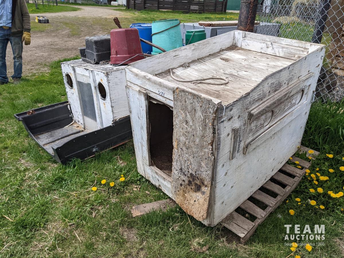 86 Large Dog Box, Sled with Dog Box, (4) Heated Pails