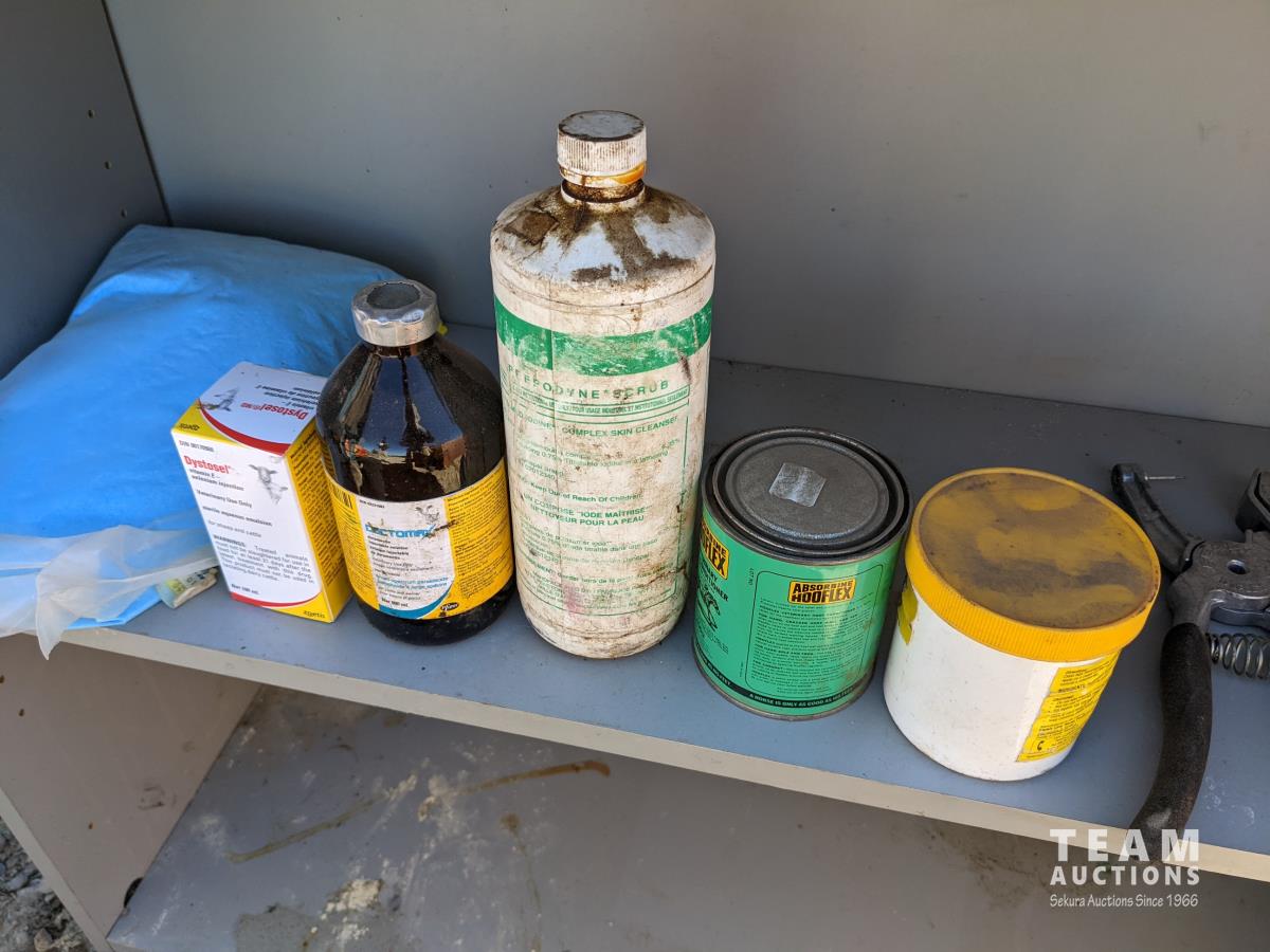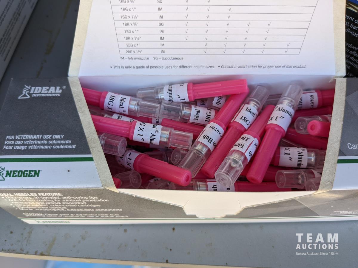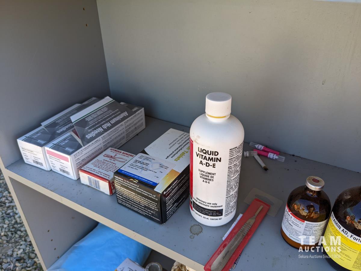 Ear tags, castrating rings, pliers, needles, nursing jugs, qty of various other vet supplies