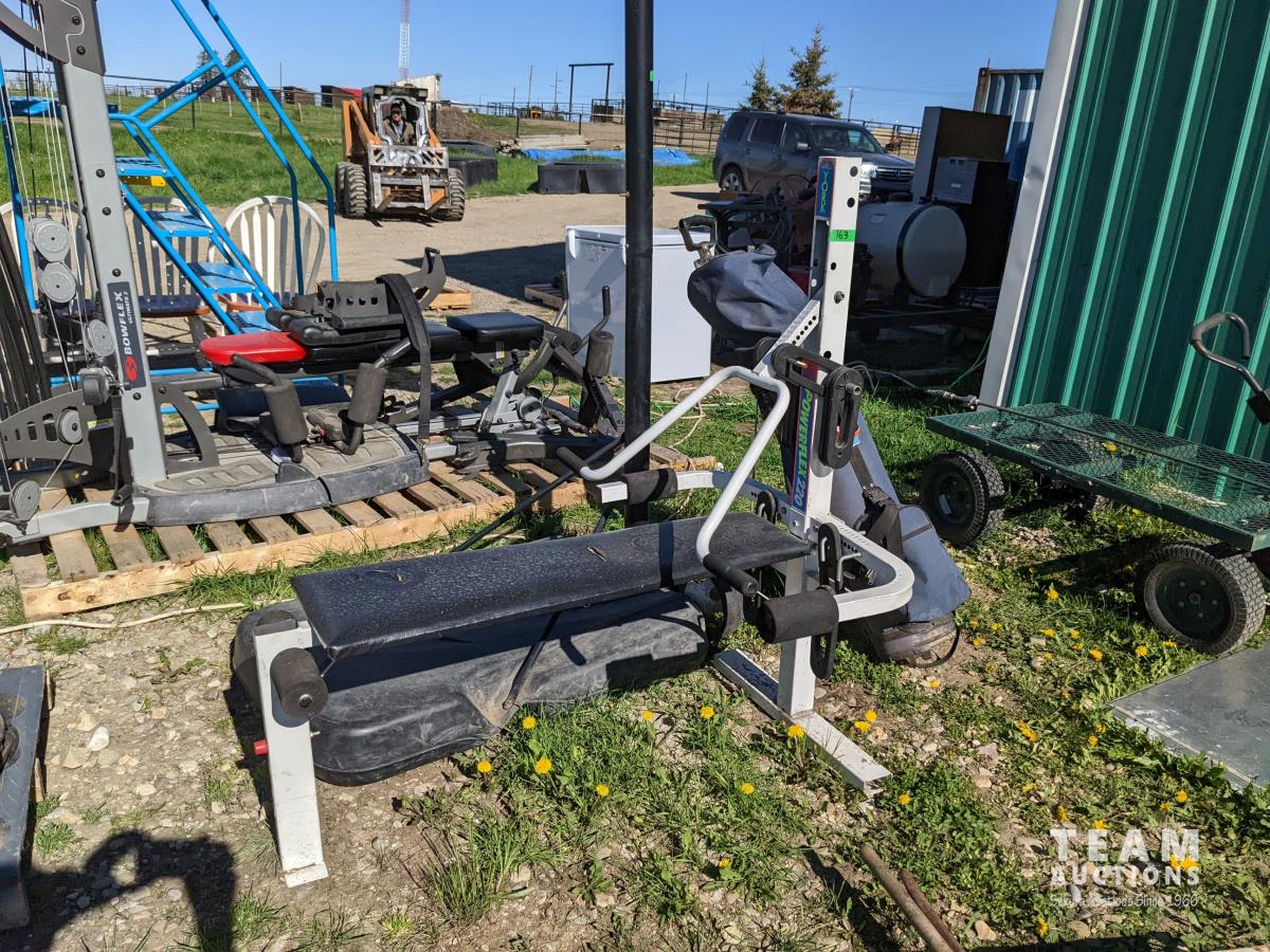 set of right hand golf clubs with pull cart, portable basket ball net, Power Flex 220 tension resistant bench