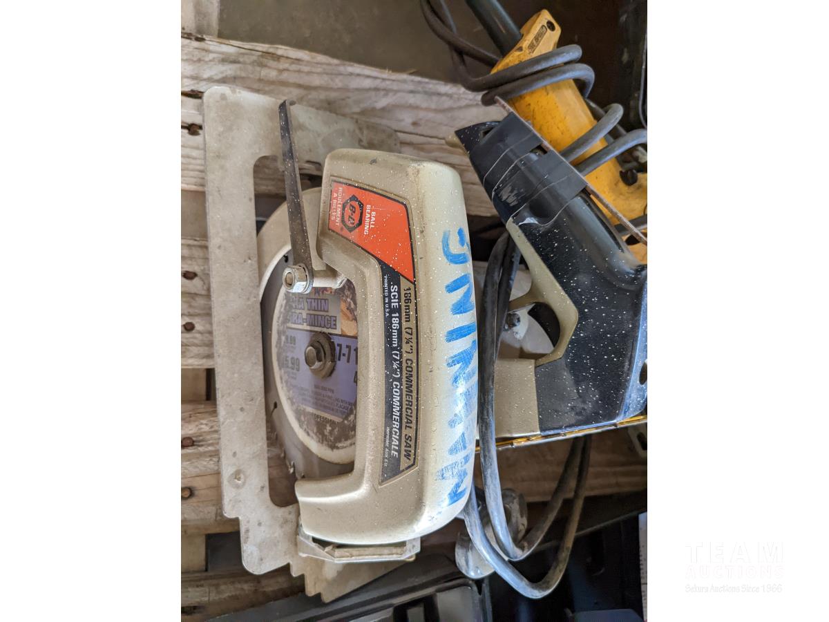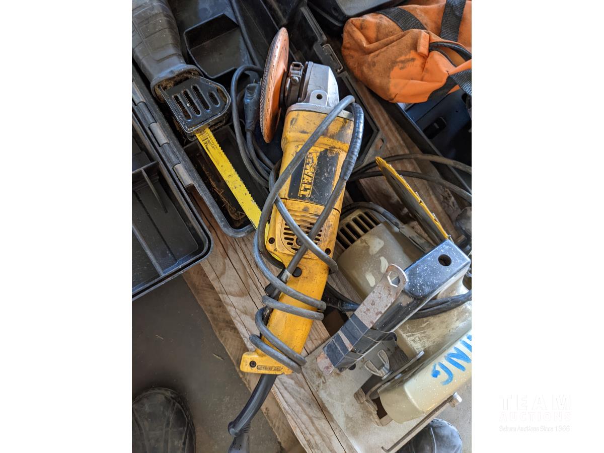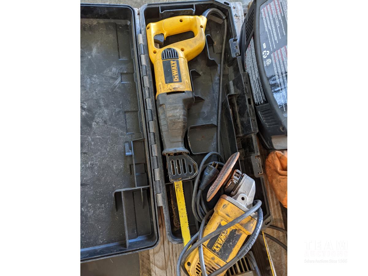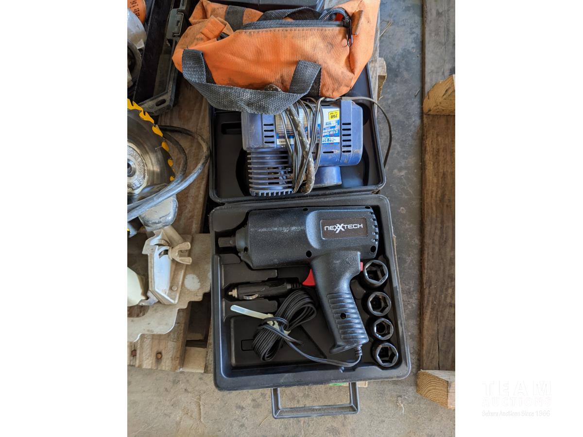 1/2 inch corded impact, 12V Cordless impact wit sockets, circular saw, DeWalt reciprocating saw, small air compressor, Elimanator booster