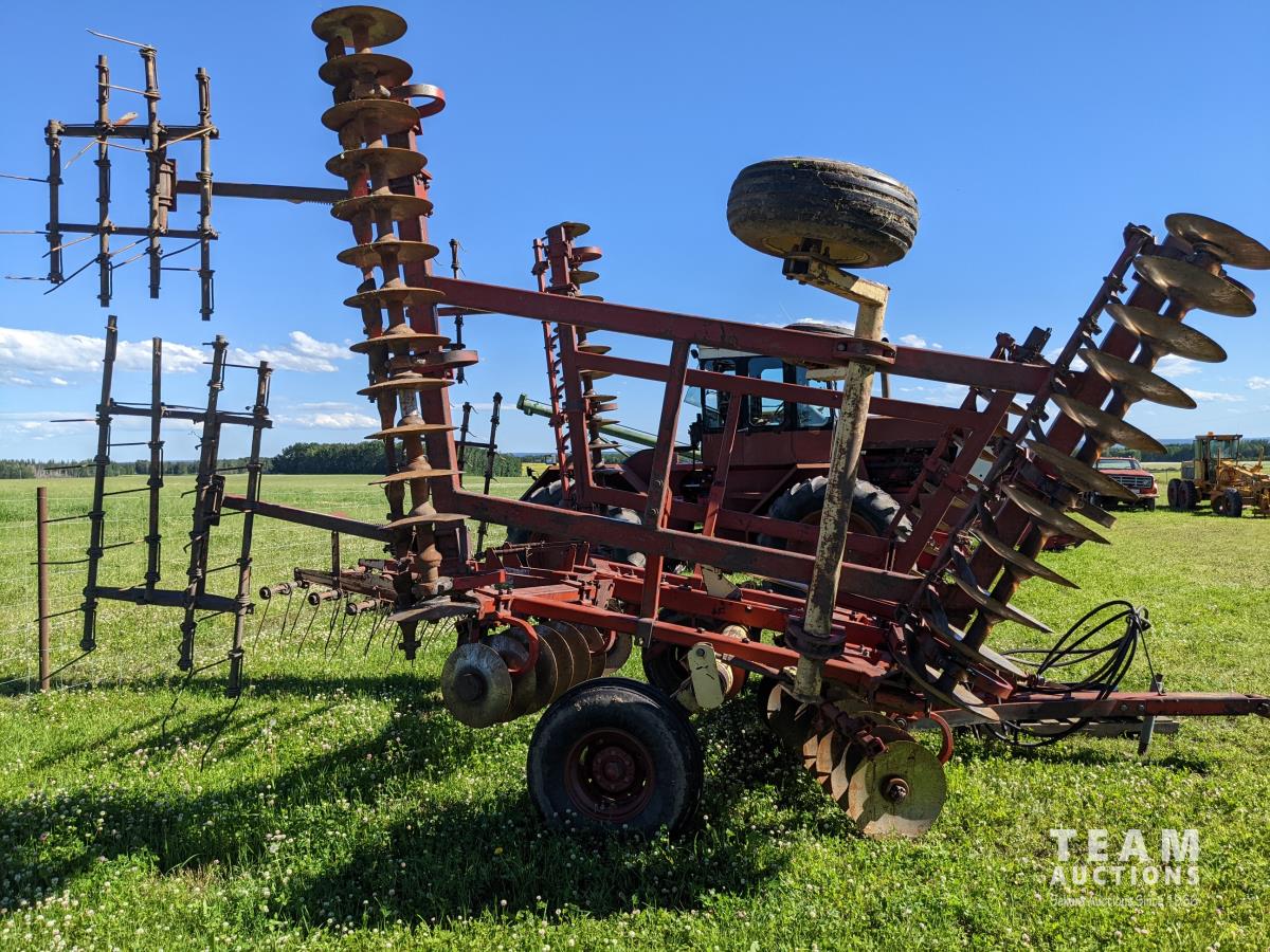 8 inch spacing, 19 inch front discs, 17 inch rear discs, scrapers, cushion gangs, Project 4 bar mounted harrows