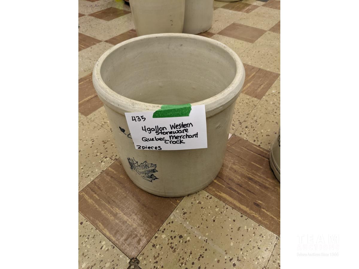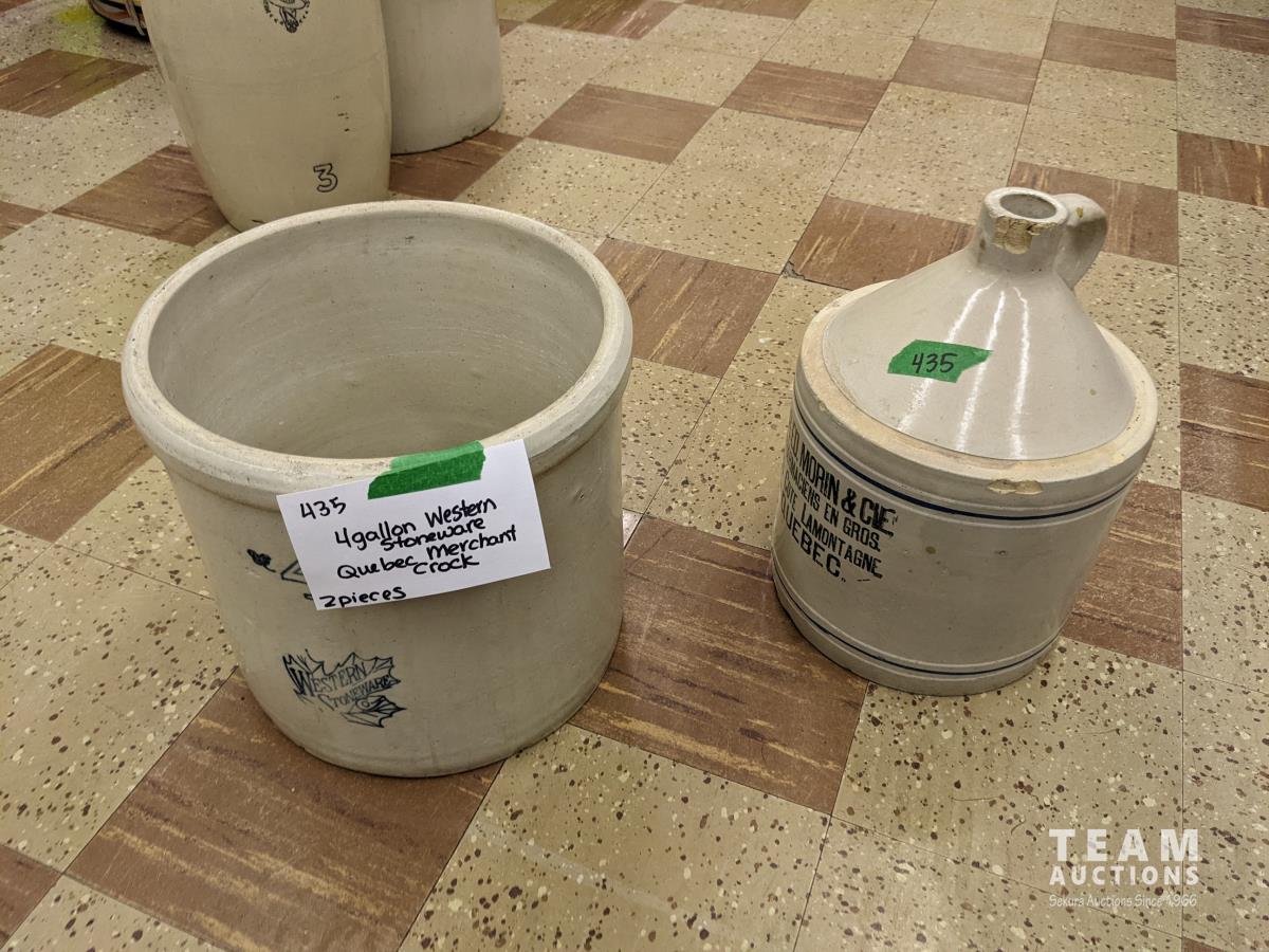 438 4 Gal Western Stoneware Crock & Quebec Merchant Crock