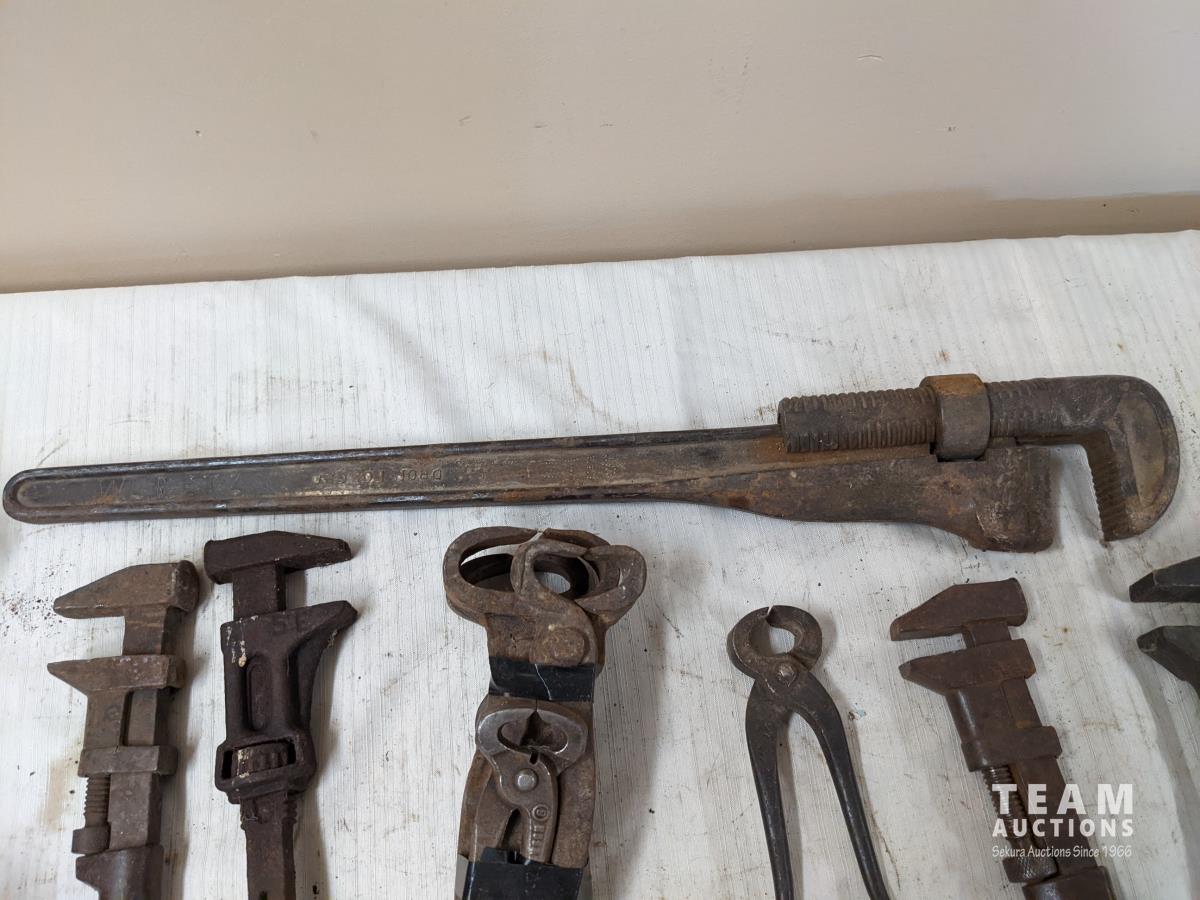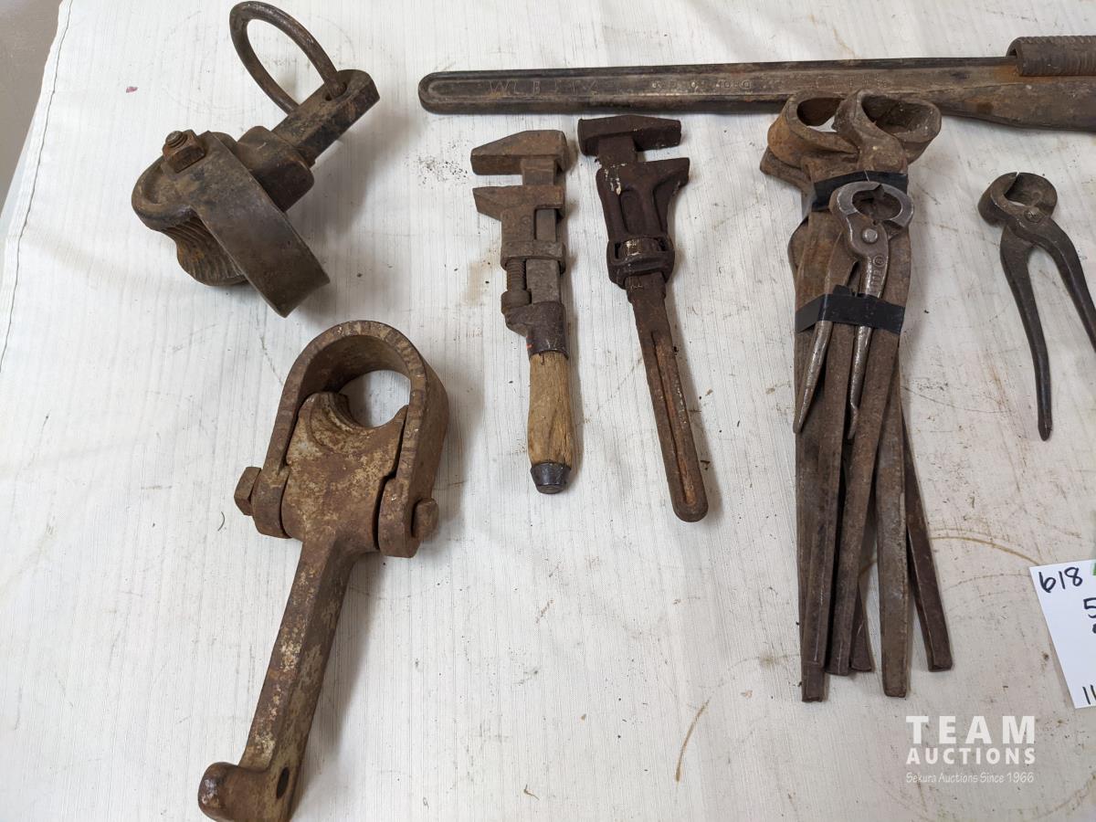 626 (5) Pipe Wrenches, (5) Nippers & Water Well Pulling Tool