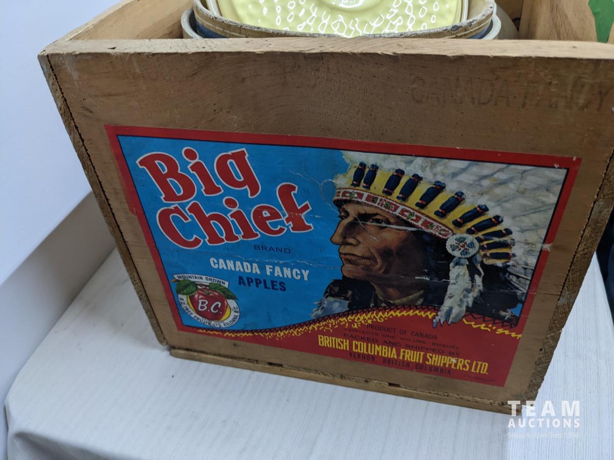 288 Big Chief Apple Crate & Various Bowls