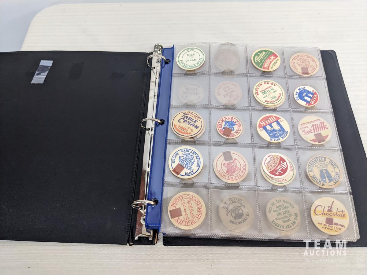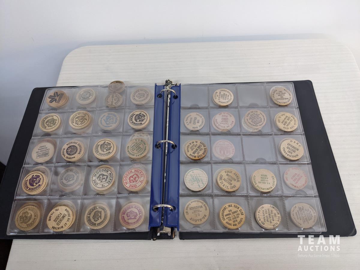 63 Binder with Wooden Nickels & Milk Caps