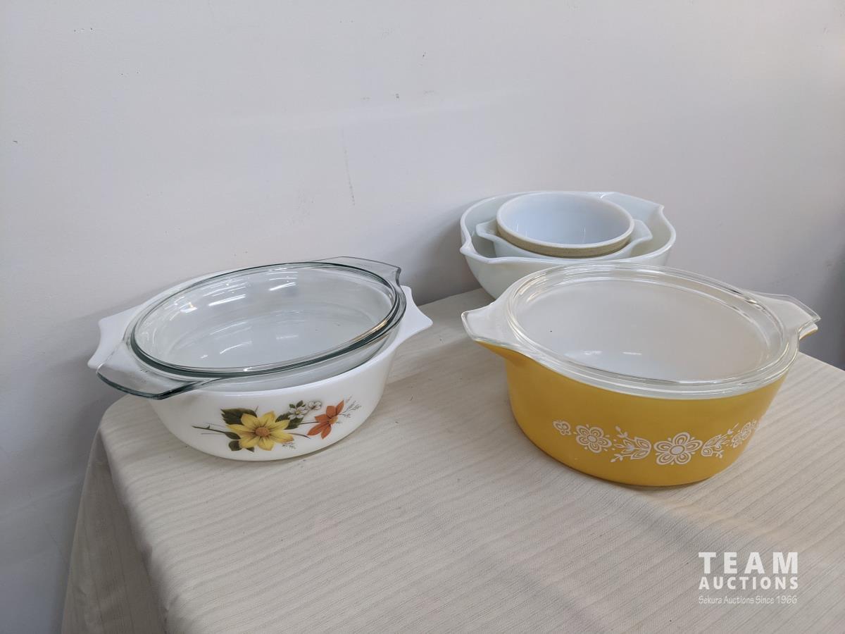 includes Pyrex, (9) pieces