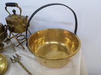 131 Large Brass Lot with Kitchen Jelly Pans, & Kettles