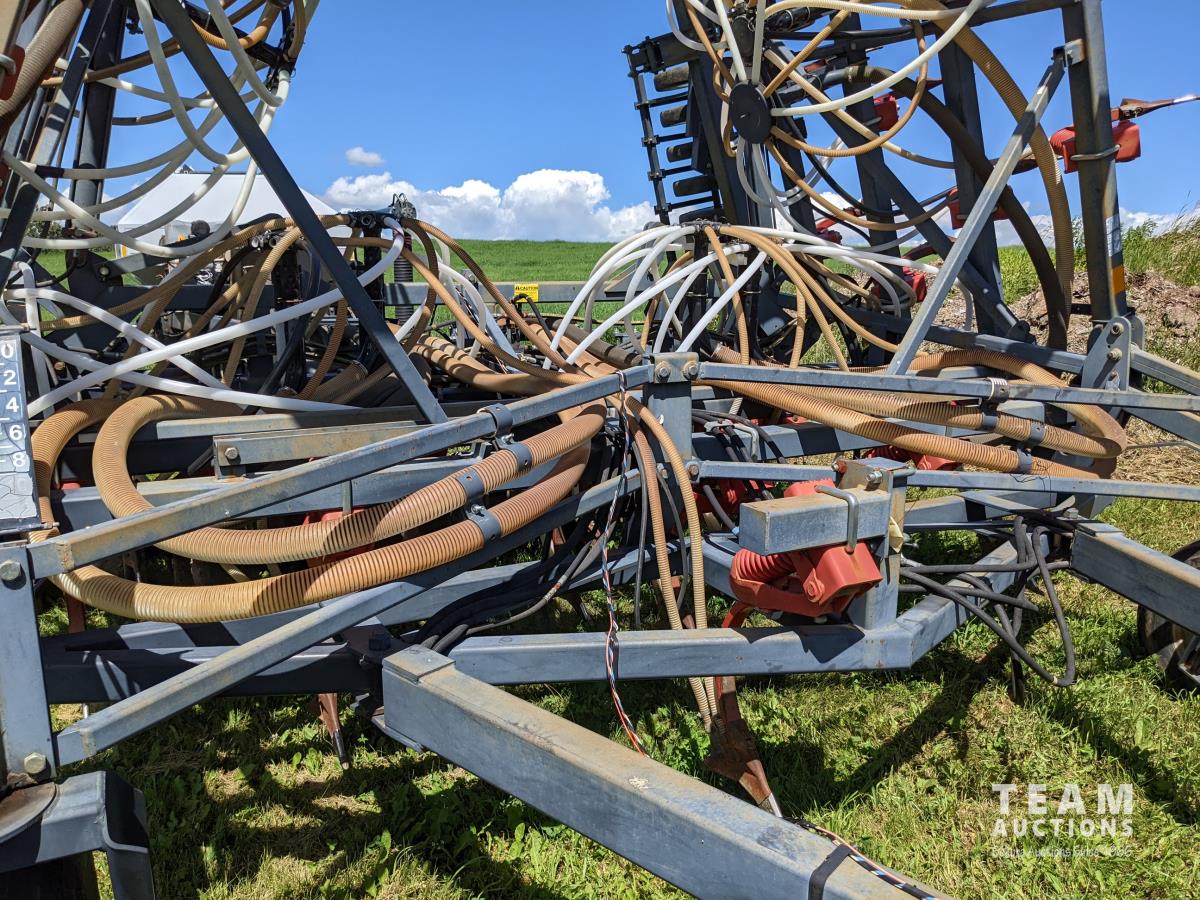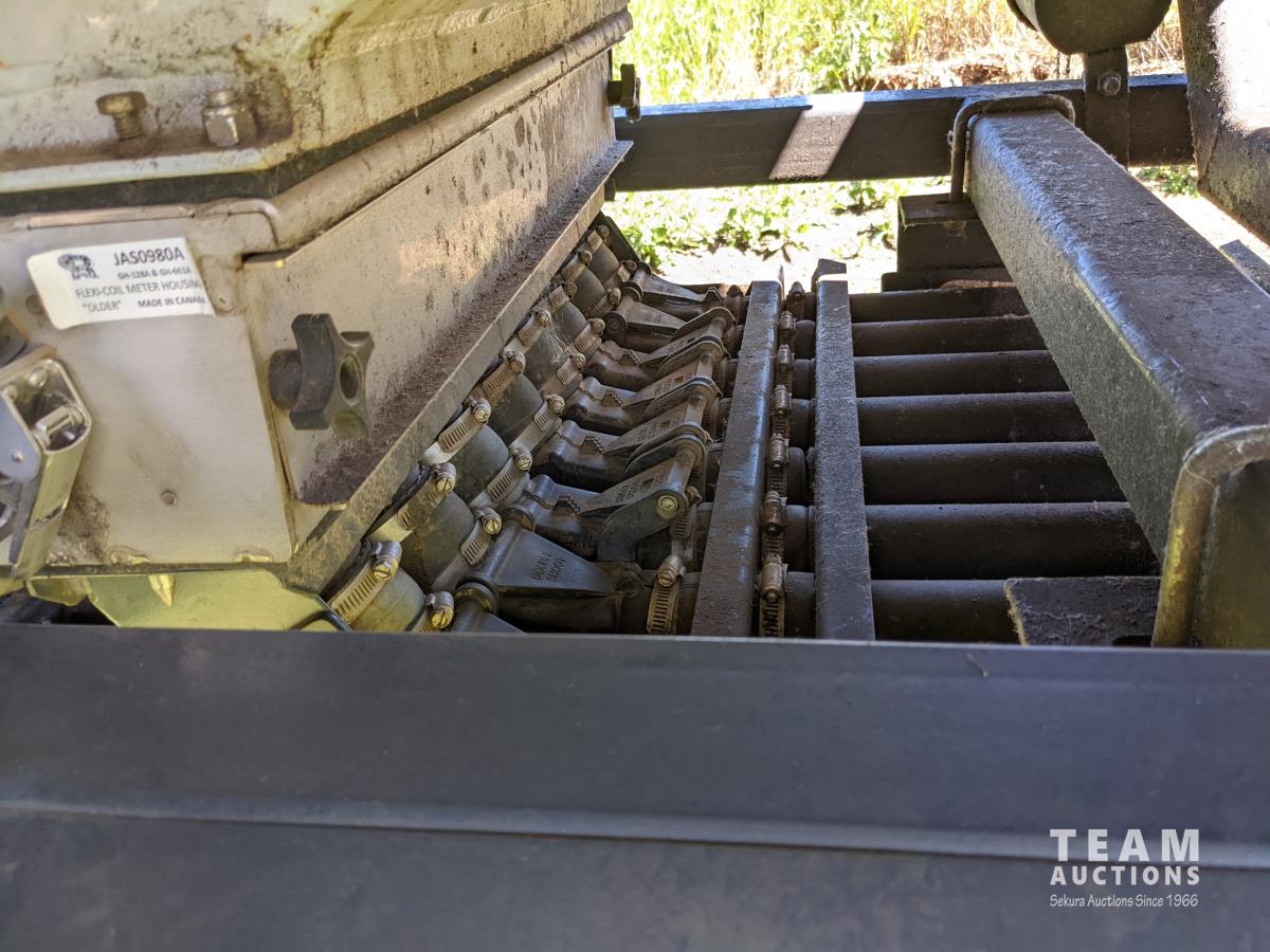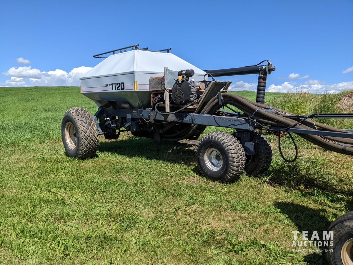 9 inch spacing, double shoot openers, rubber packers, Flexi-Coil 1720 dual compartment cart with gas engine drive fan, 11L-15 front & 9.5L -15 rear tires on drill, 16.5-16.1 front & 18.4-26 rear tires on cart