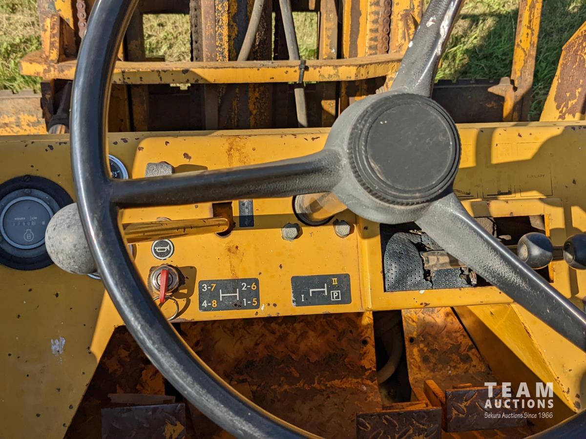 6000 lb cap, 4 Ft forks, John Deere 4 cylinder engine, 8 speed transmission, 16.9-24 front and 11L-16 rear tires