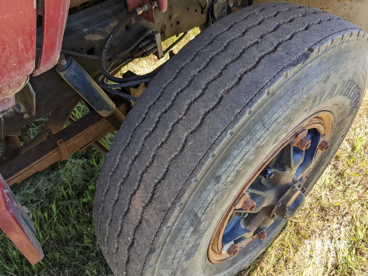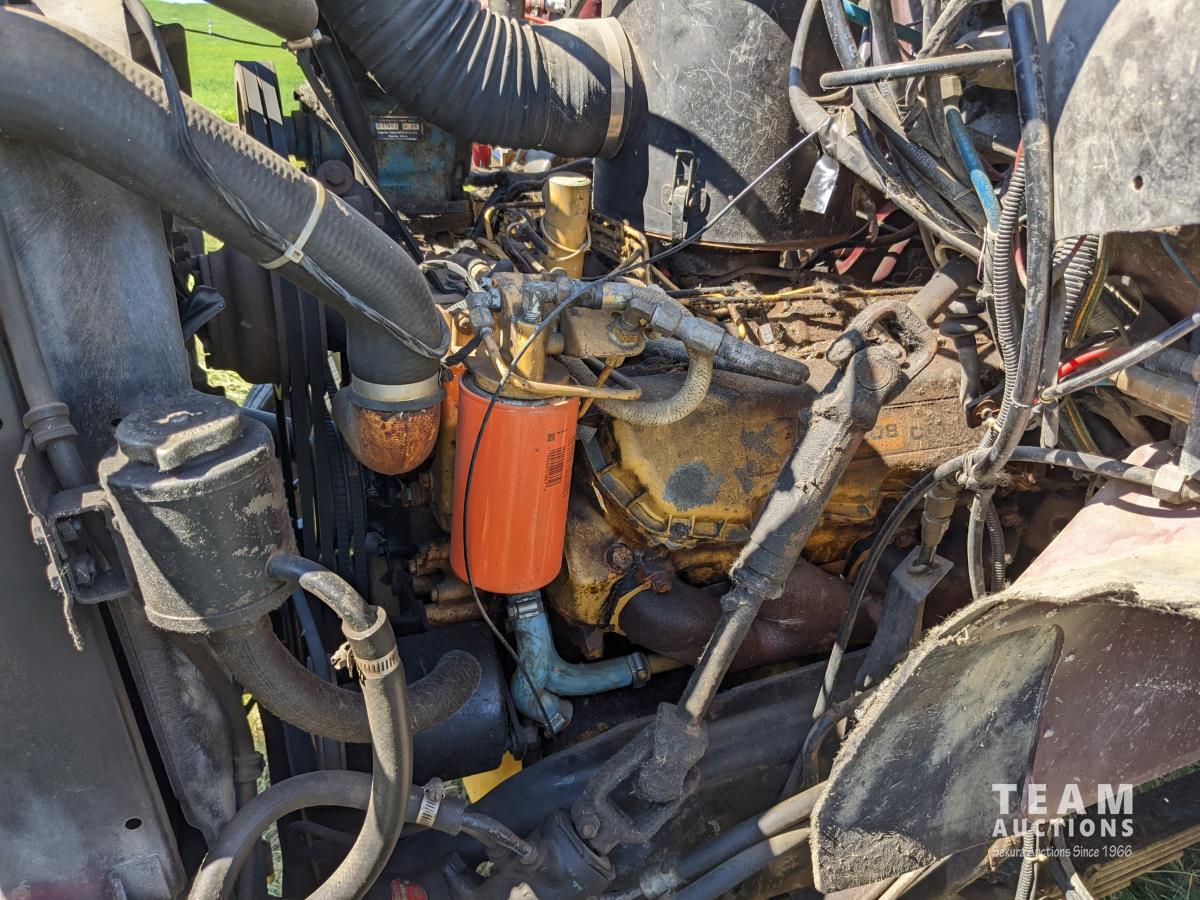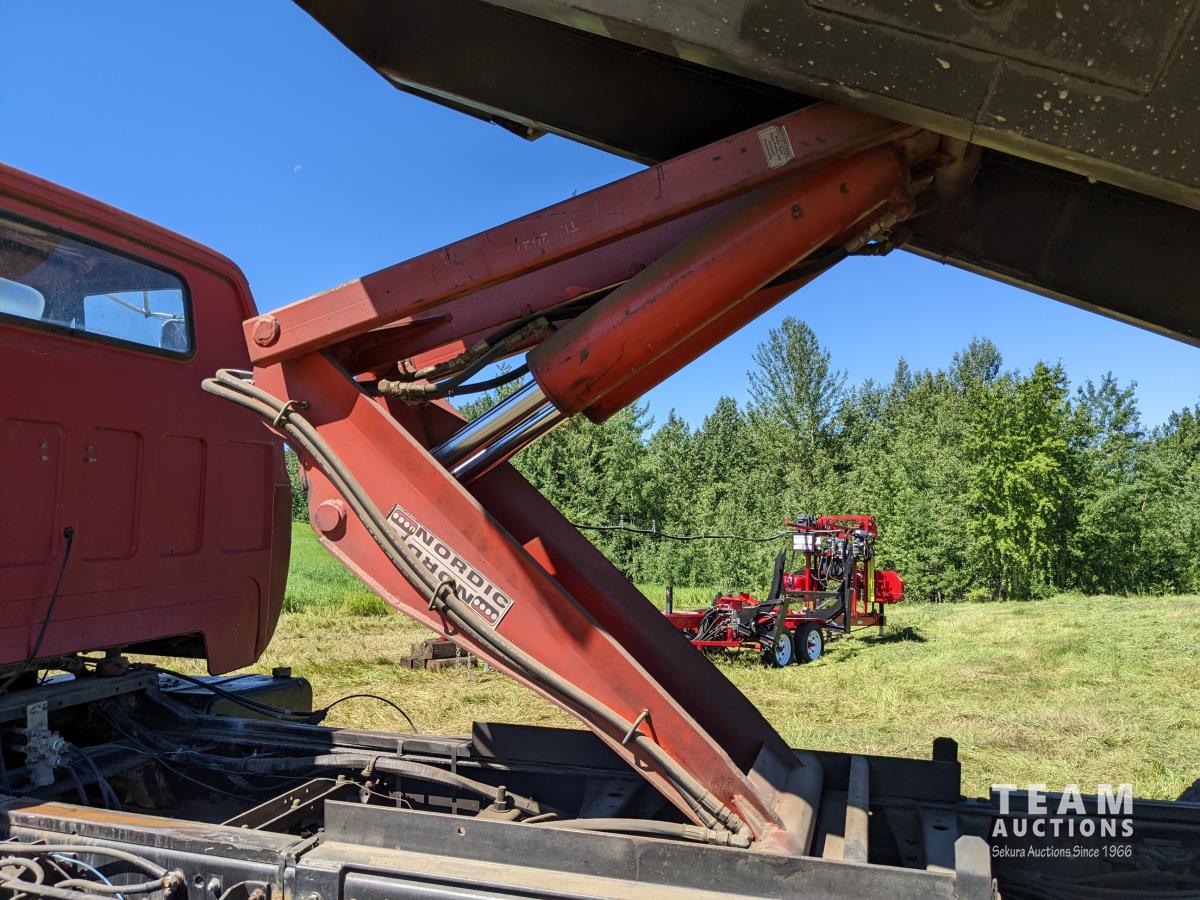 Caterpillar 3208 diesel engine, 5&4 transmission, air brakes, spring suspension, 10.00R20 front & rear tires, 19 Ft steel box with Nordic hoist, Michel's roll tarp