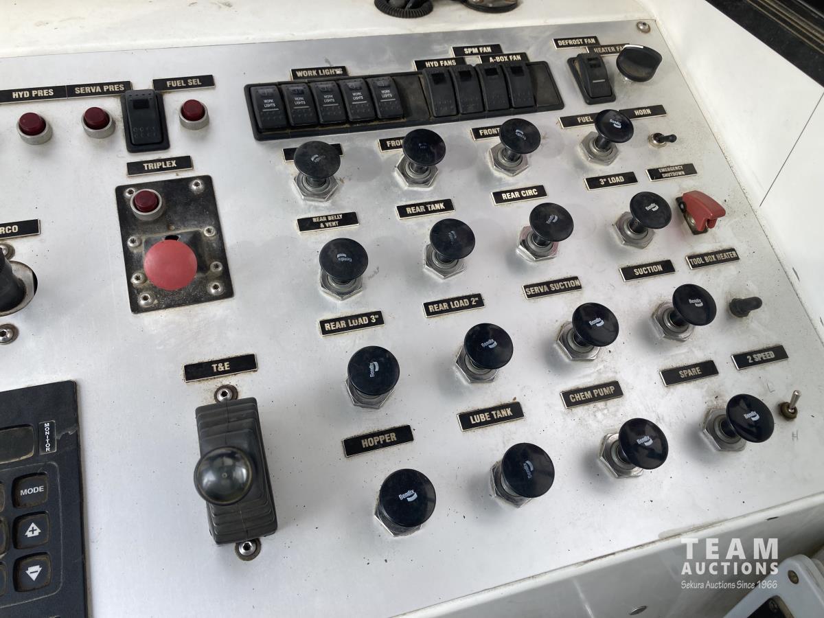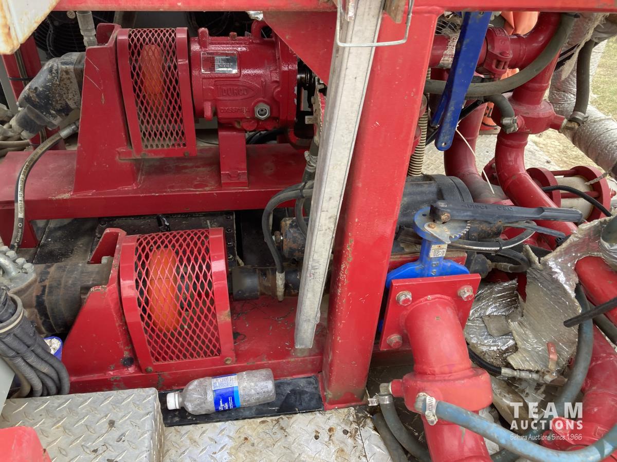 Detroit DD15, 14.8 L, 560 HP, diesel, engine brake, Allison 4700 OFS automatic transmission, Webasto heater, Meritor MFS20133A 20000 lb front, Meritor RZ166RSRS 66000 lb rears, 4.89 ratio, 305 WB, airliner air ride suspension, IMEX rig up, 2013 Hamm 9450 litre 3 compartment TC412/406 Tank, 2013 CW Manufacturing burner, 2013 ITB operator station w/controls & gauges, Weir SPM TWS600S 3.5 inch 10000 PSI triplex pump, Durco Mark3 3X2 centrifugal pump, 3 inch T&E pump, Mobiled Tatech computer, hose reel, aluminum wheels, 36 inch sleeper, 445/65R22.5 front, 11R24.5 rear