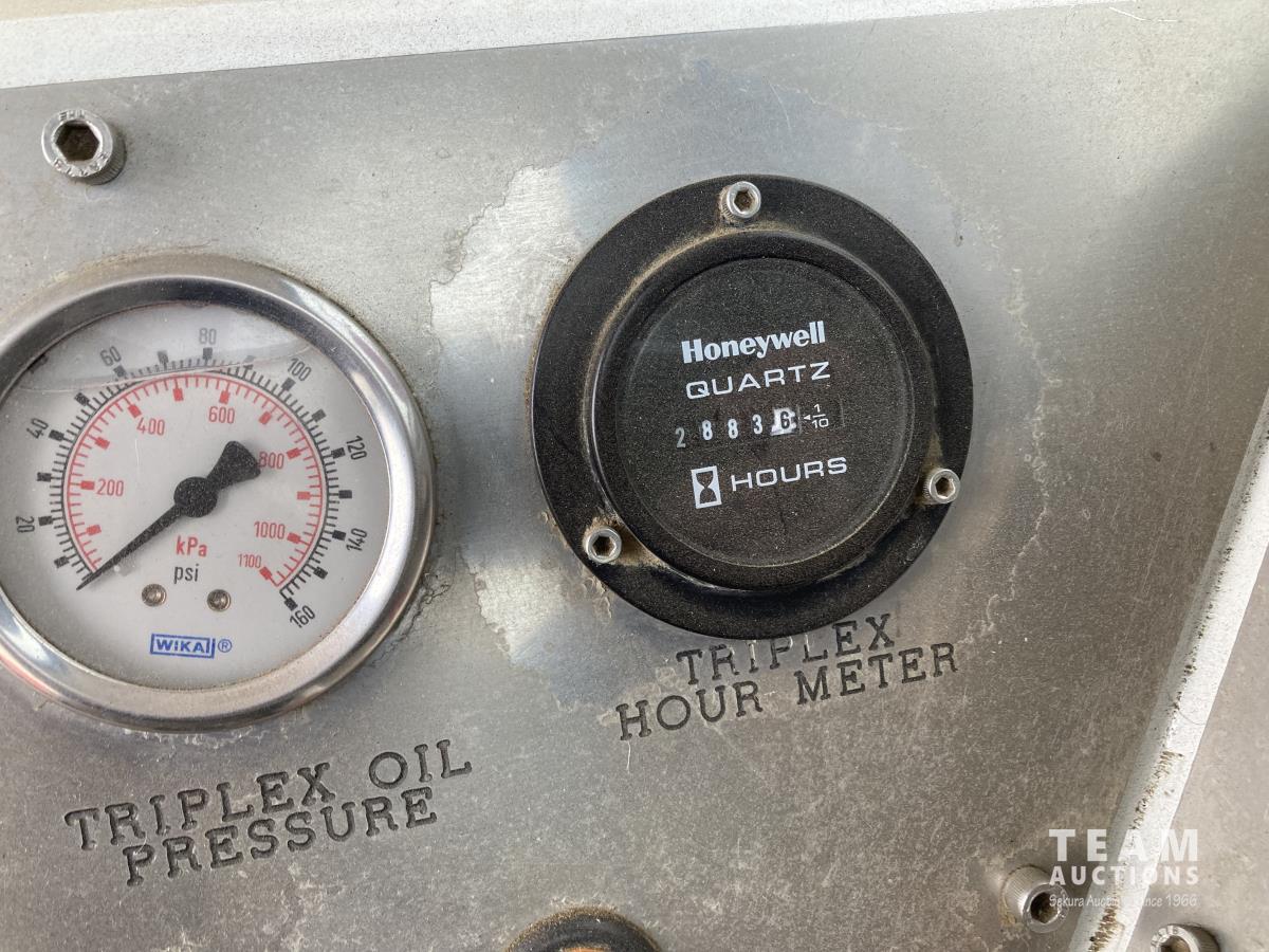 Detroit DD16, 15.6 L, 600 HP, diesel, engine brake, Allison 4700 OFS automatic transmission, triple differential lock, cross lock, Meritor MFS20133A 20000 lb front, Meritor RZ166RSRS 69000 lb rears, 4.89 ratio, 364 WB, double frame, airliner air ride suspension, TCB rig up, 2014 Hamm 10720 litre 3 compartment TC412/406 Tank, 2013 Fabmaster burner, operator station w/controls & gauges, Panasonic CF-53 computer, Weir SPM TWS600S 3.5 inch 10000 PSI triplex pump, Mission 4X3 centrifugal pump, 3 inch T&E pump, hose reel, aluminum wheels, 36 inch sleeper, 445/65R22.5 F, 11R24.5 R