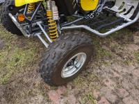 liquid cooled, electric start, 5 speed transmission, 22X7R12 front, 26X12-12 rear tires