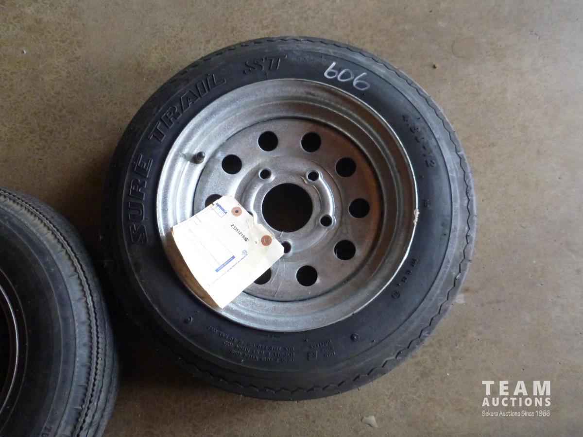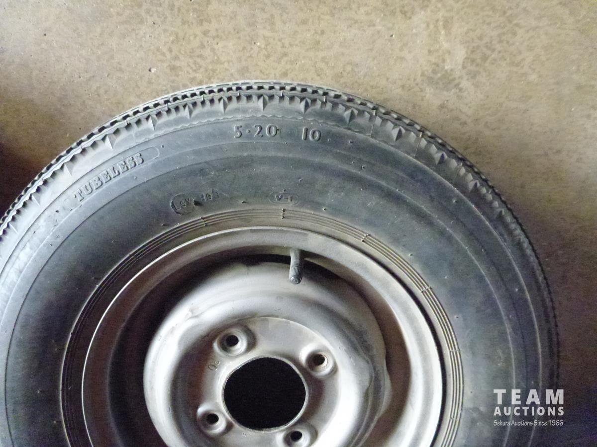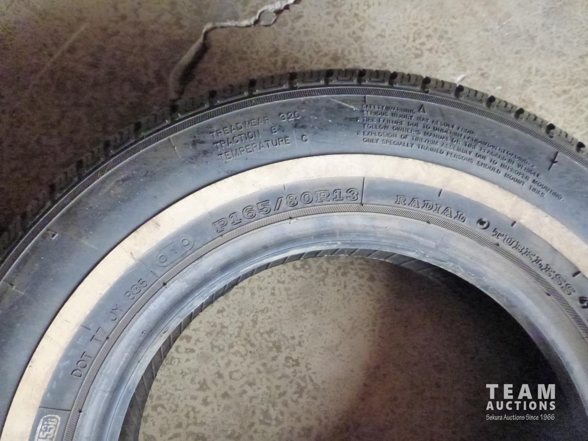 (1) A78-13 tire with 5 bolt rim, (1) 4.80-12 tire with 5 bolt rim, (1) 5.20-10 tire with 4 bolt rim, (1) P165/80R13 tire