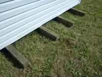 walk in door, roll up 6 ft door, on (4) wood skids, vinyl siding, asphalt roof