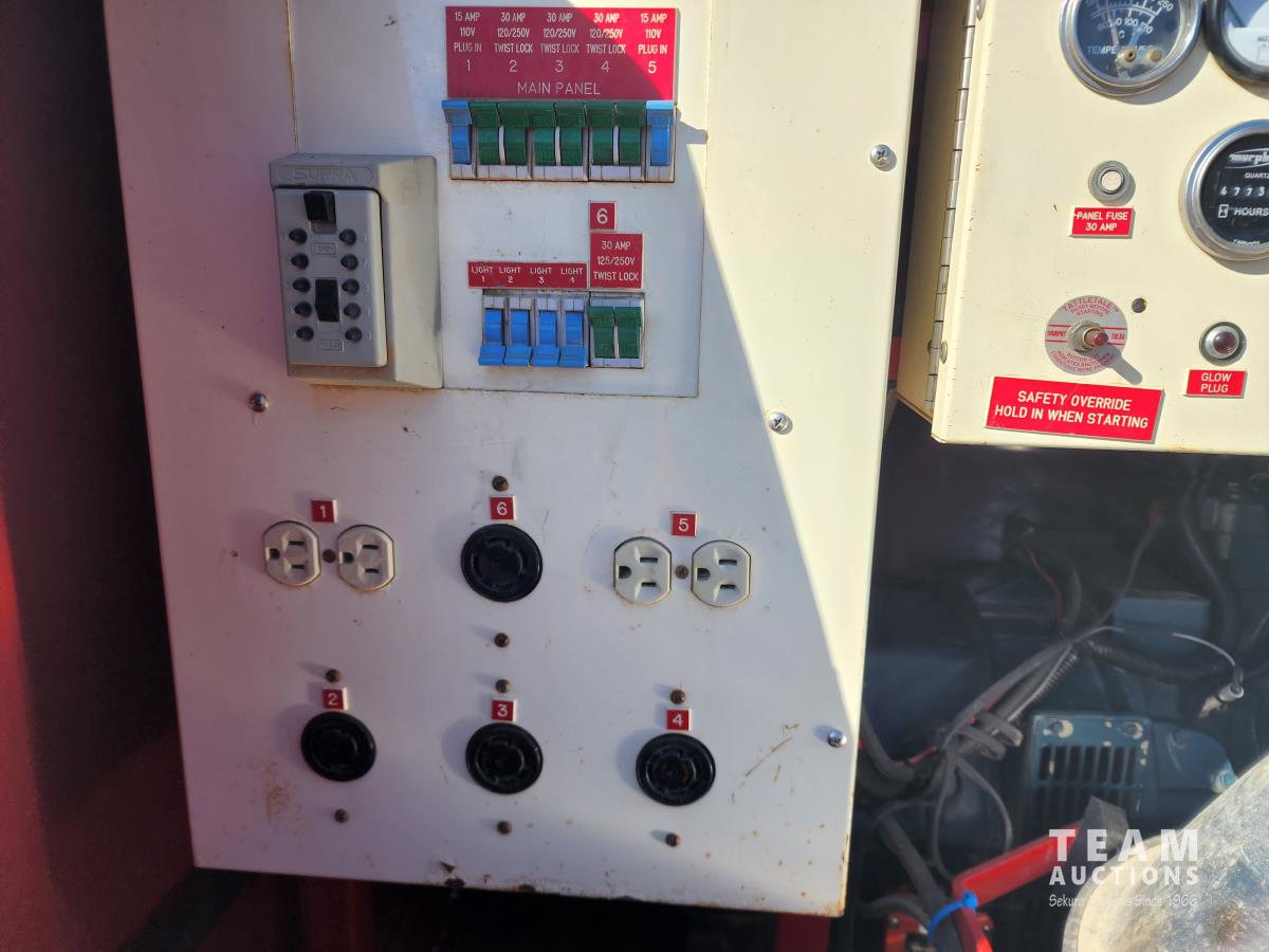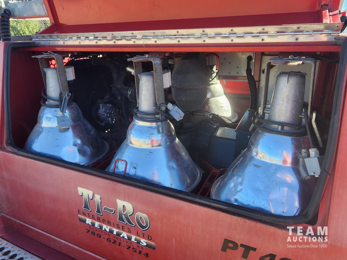 80 inch wide, torflex suspension, Kubota engine, 1430L fuel tank, 235/80R16 tires on aluminum rims, lift 30 ft high, single phase generator, (4) 1000 watt bulbs, 110/220 power outlets