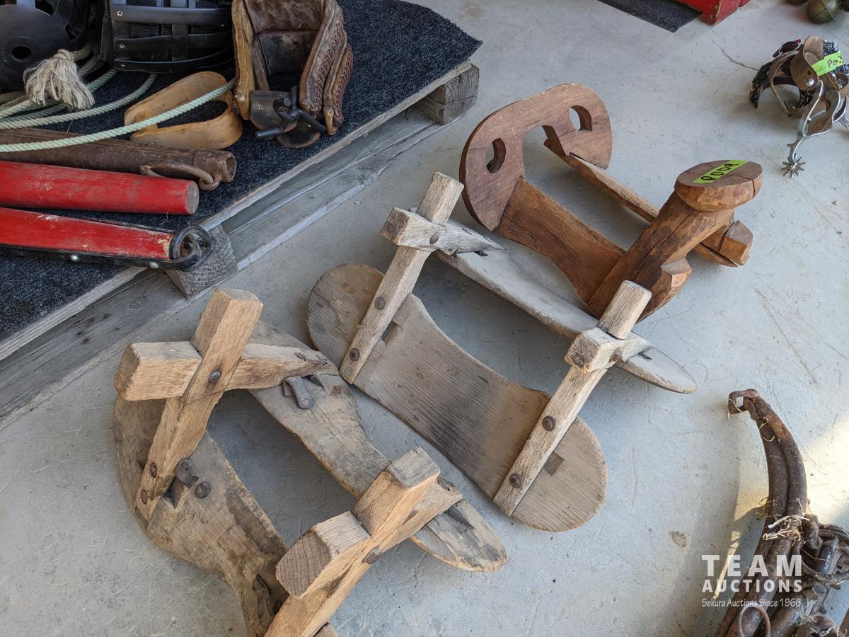206 (2) Saw Buck Pack Saddles & (1) Homemade Mexican Saddle Tree