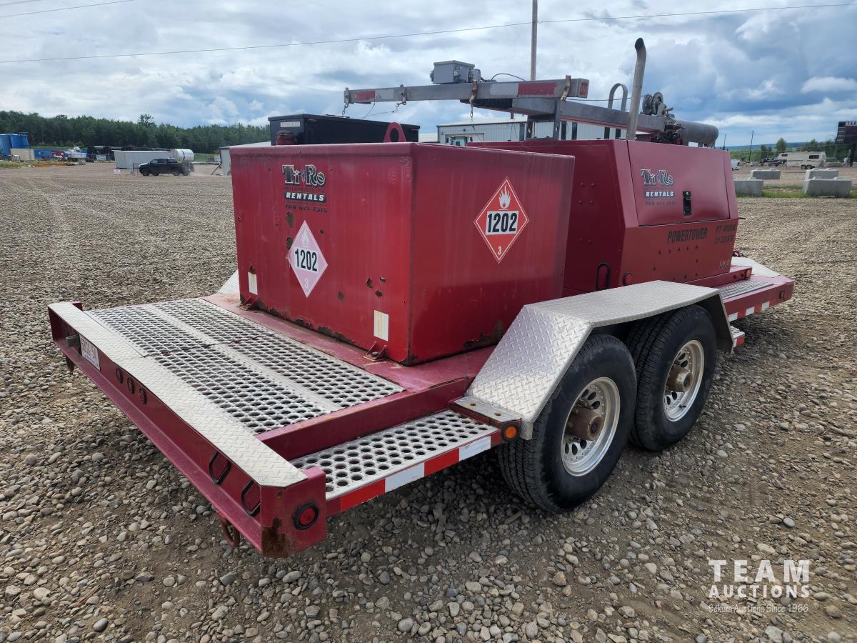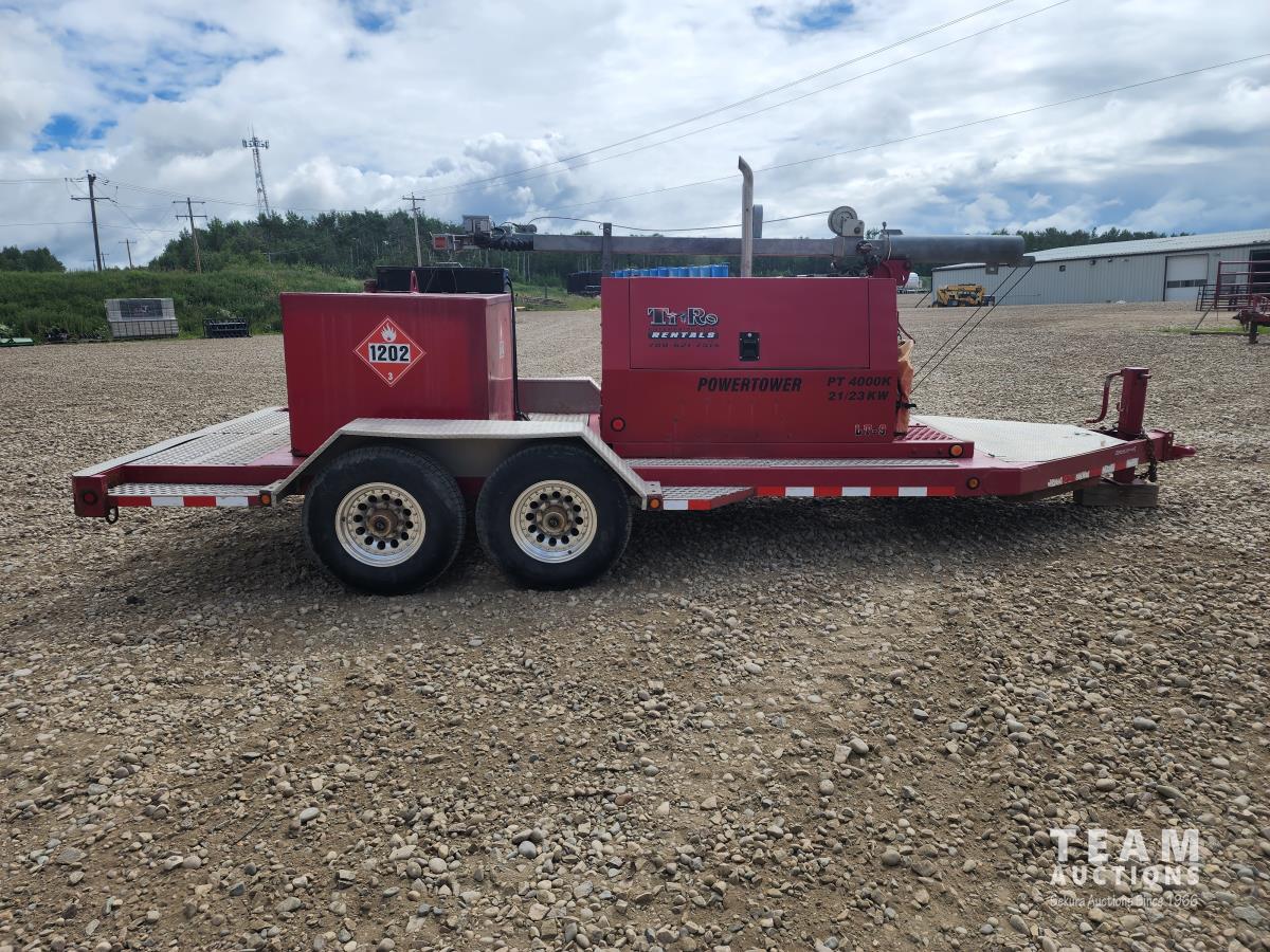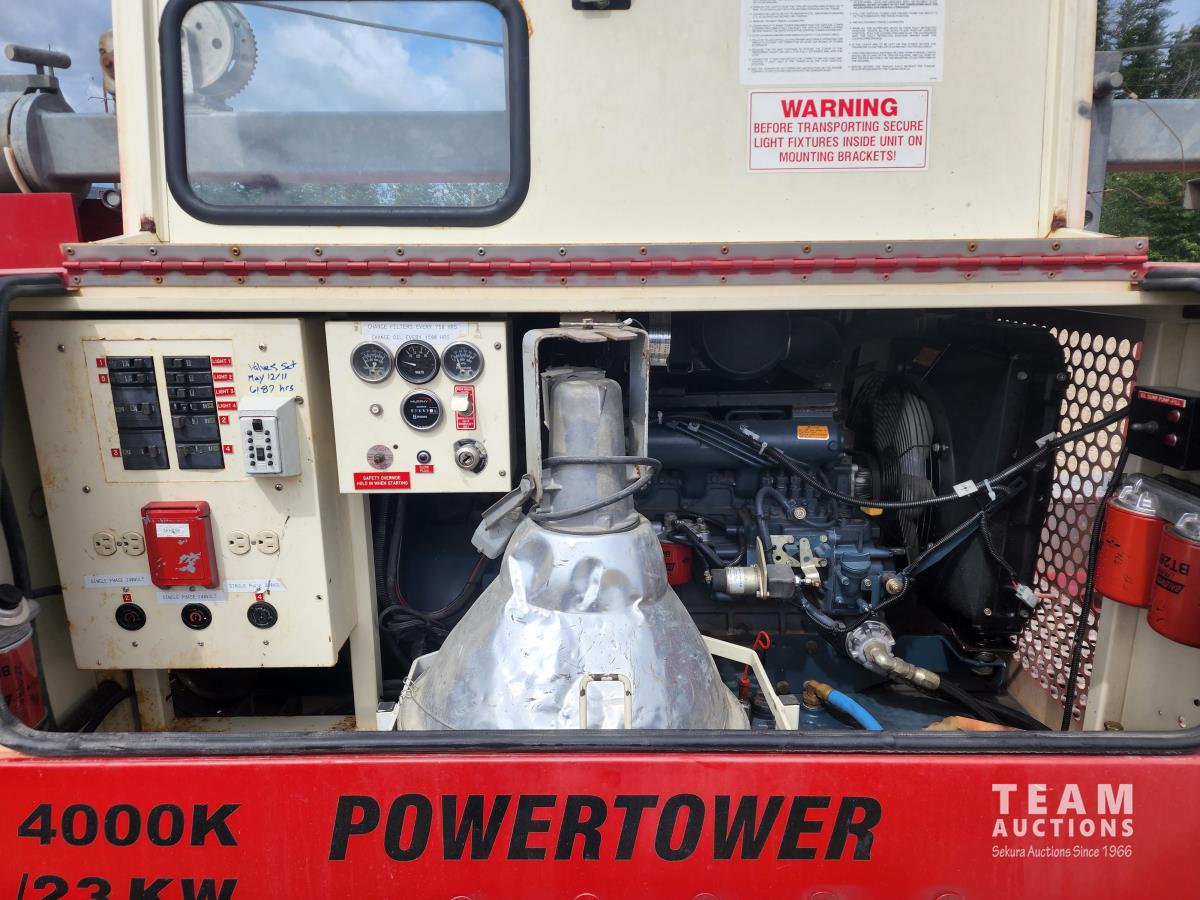 80 inch wide, torflex suspension, Kubota engine, 1430L fuel tank, 235/80R16 tires on aluminum rims, lift 30 ft high, three phase generator, (4) 1000 watt bulbs, 110/220 single and 3 phase power outlets, large oil sump