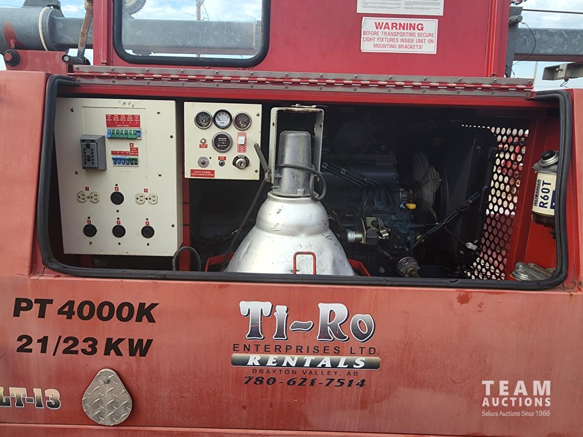 80 inch wide, torflex suspension, Kubota engine, 1430L fuel tank, 235/80R16 tires on aluminum rims, lift 30 ft high, single phase generator, (4) 1000 watt bulbs, 110/220 power outlets