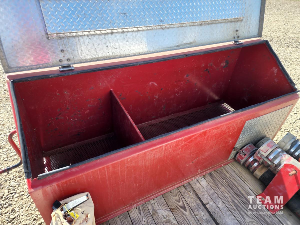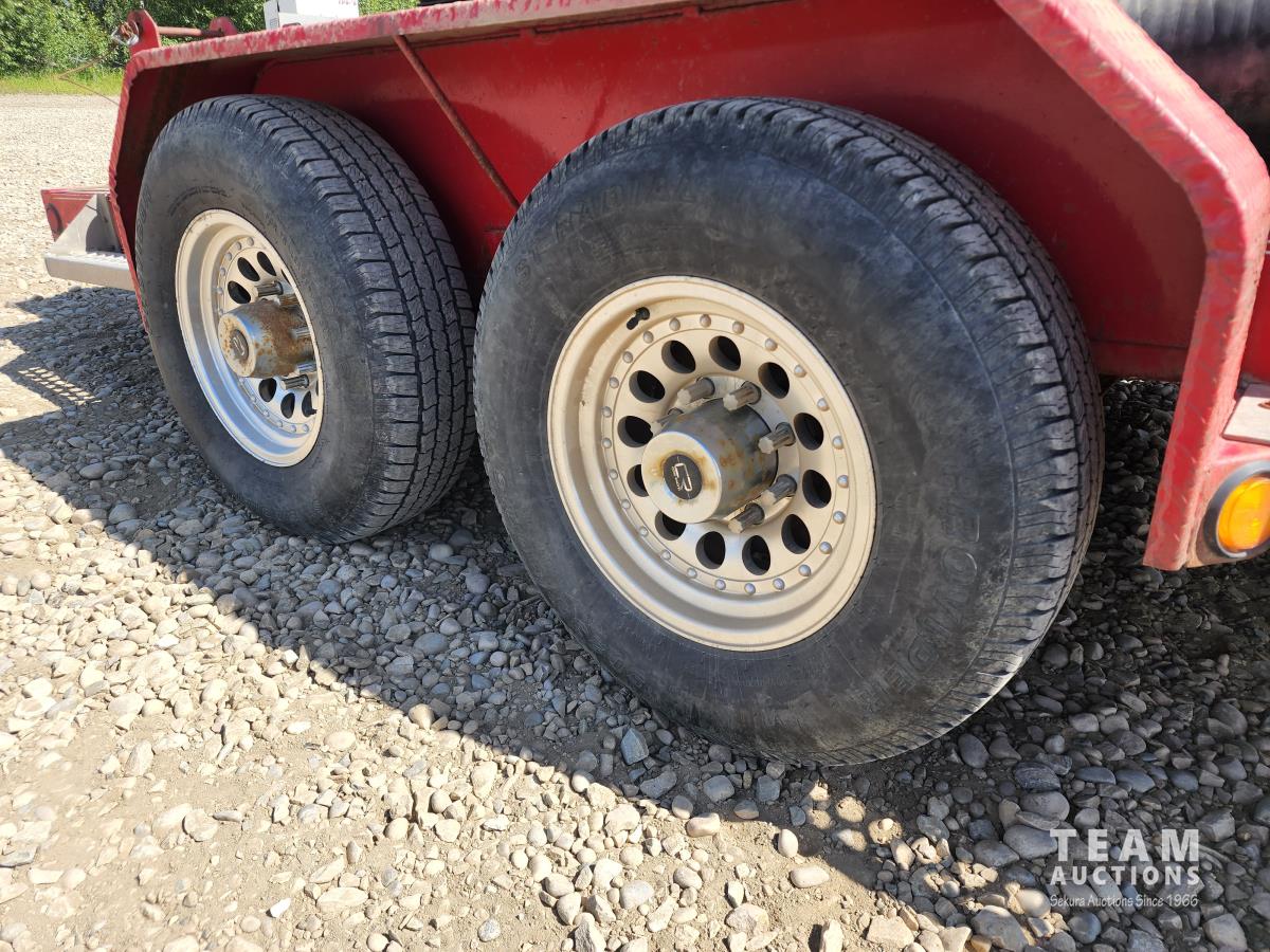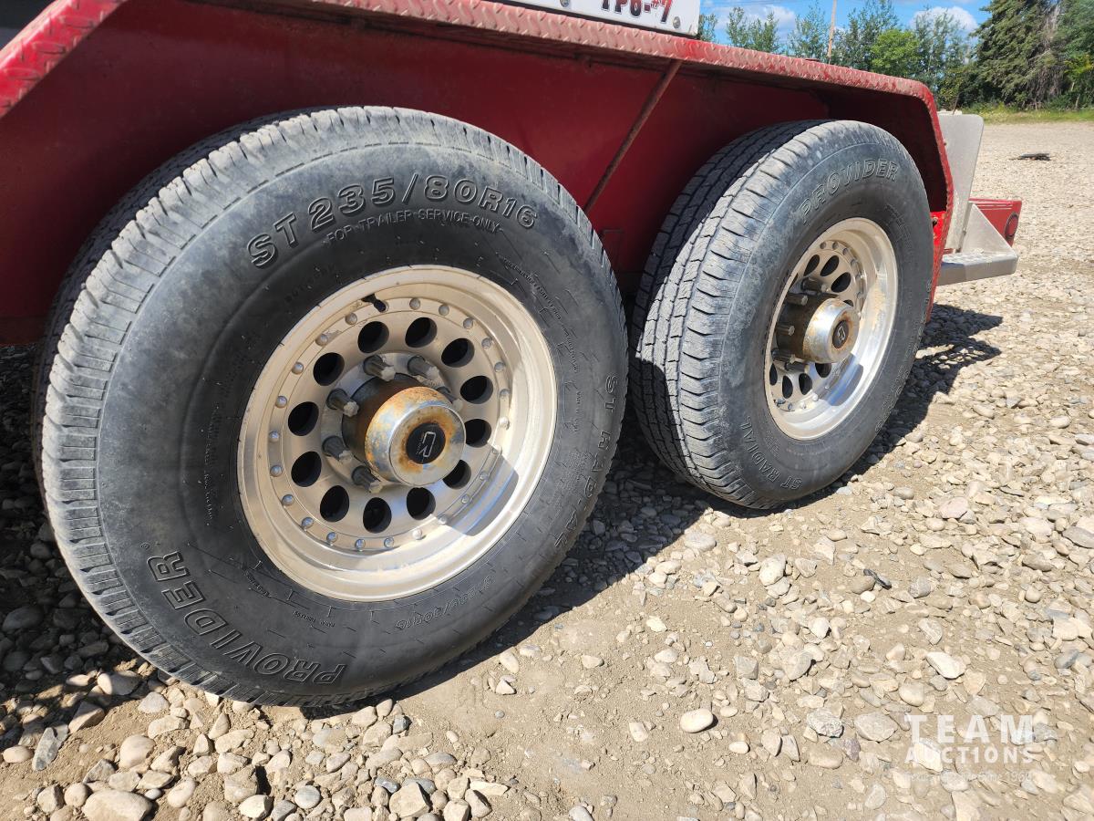 (2) 7,000 lb axles, 80 inch wide, torflex suspension, job box, (4) 6 inch hoses, 235/80R16 tires on aluminum rims
