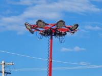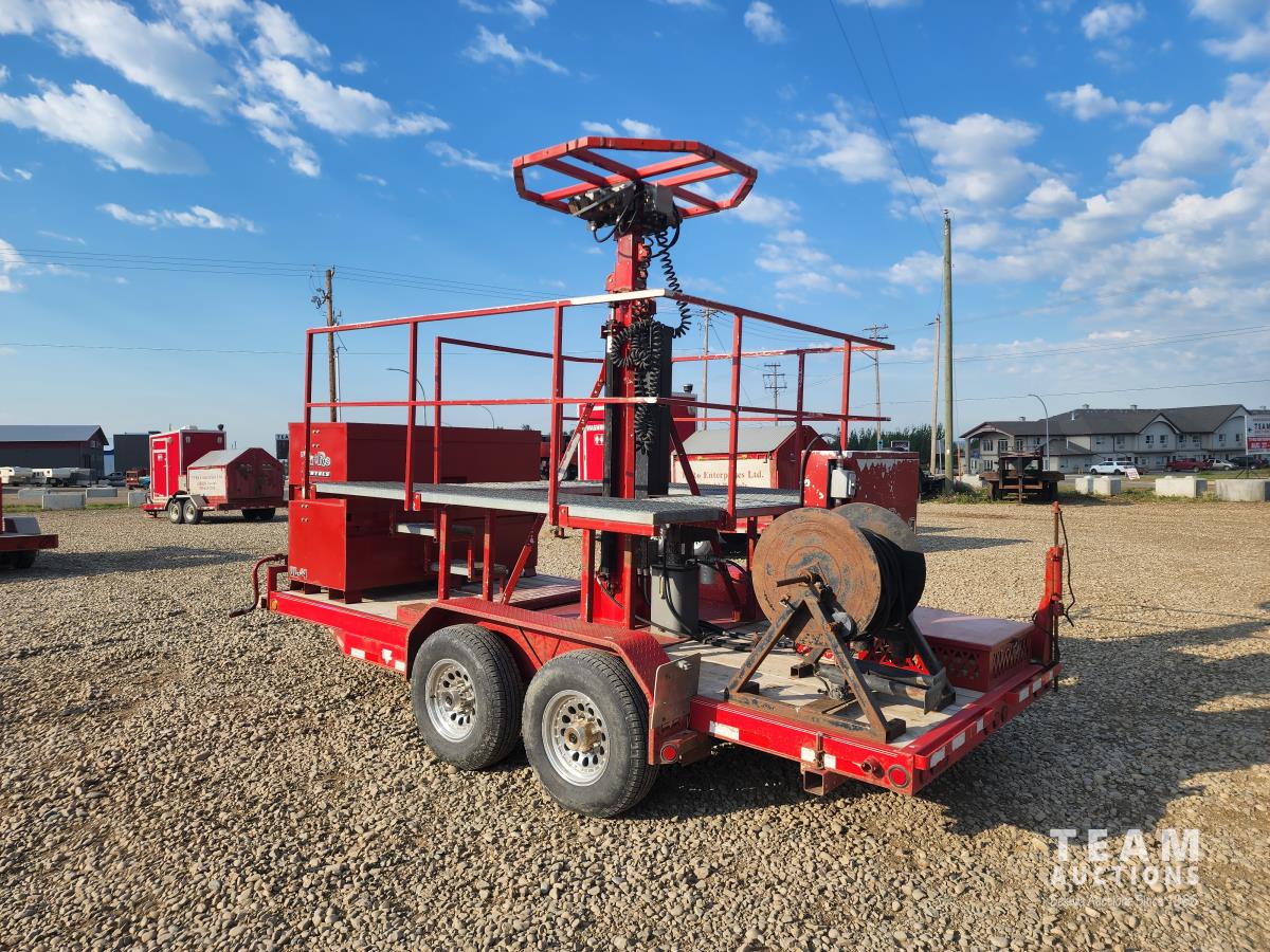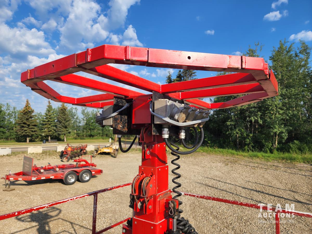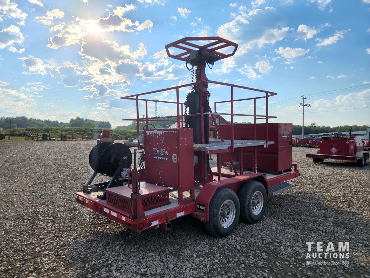 (2) 7,000 lb axles, 80 inch wide, torflex suspension, (8) lights, 235/80R16 tires on aluminum rims, 45 ft height, (8) LED lumen 26,000 watt lights, lights over a 400 ft circle, operates with 220 watt single phase power