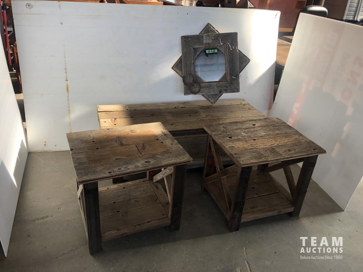 (2) end tables (24 inch X 20 inch X 22 inch), (1) coffee table (53 inch X 20-1/2 inch X 18 inch) & matching mirror