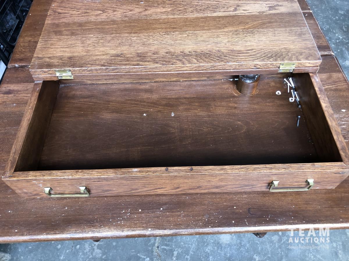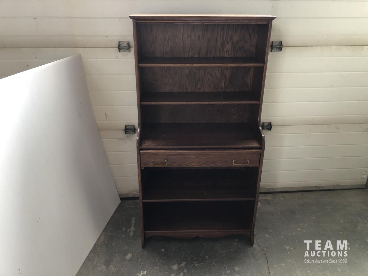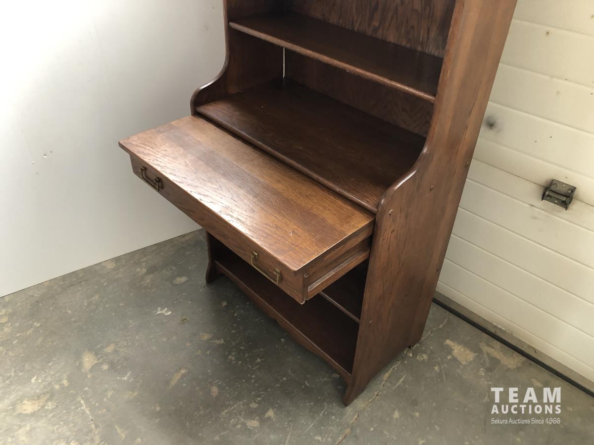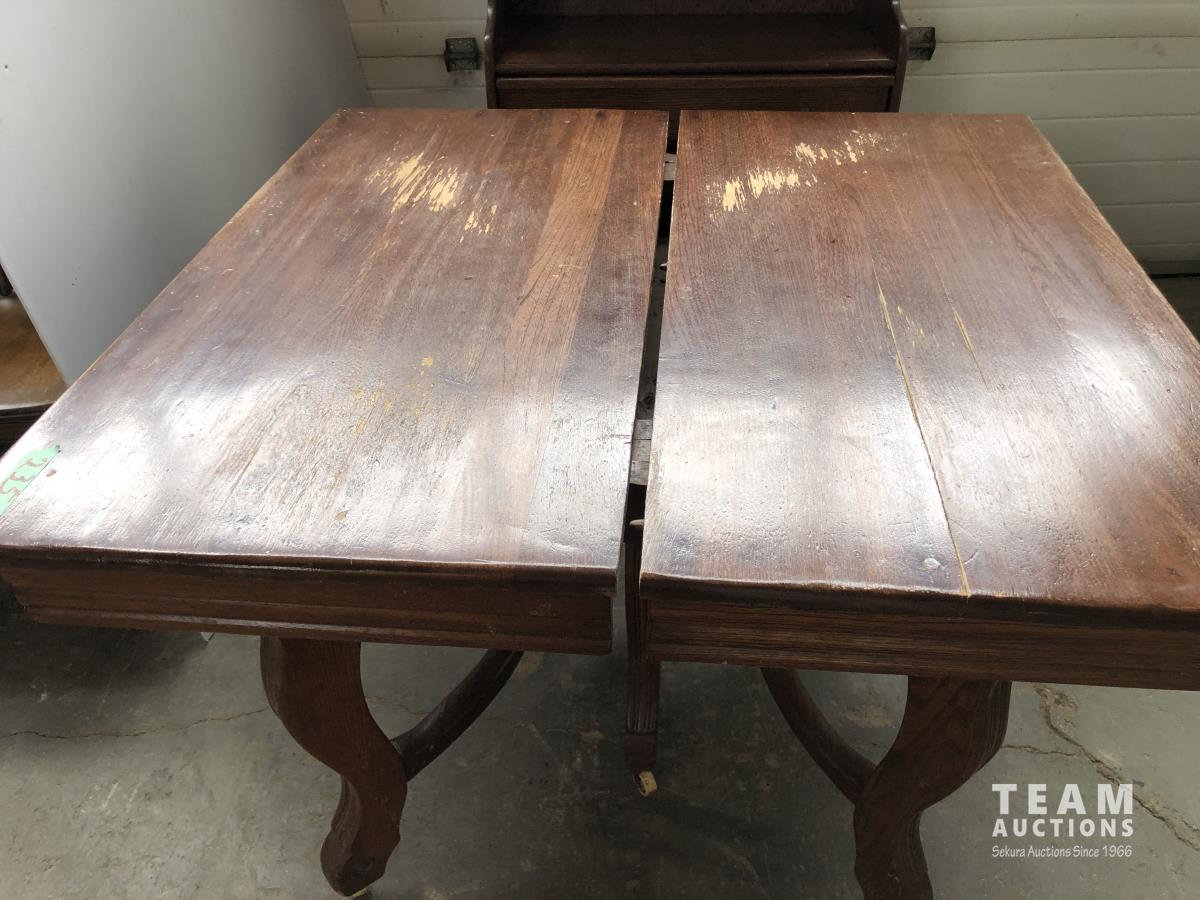 109 Antique Cabinet w/ Slide Out Desk w/ Inkwell & Antique Table