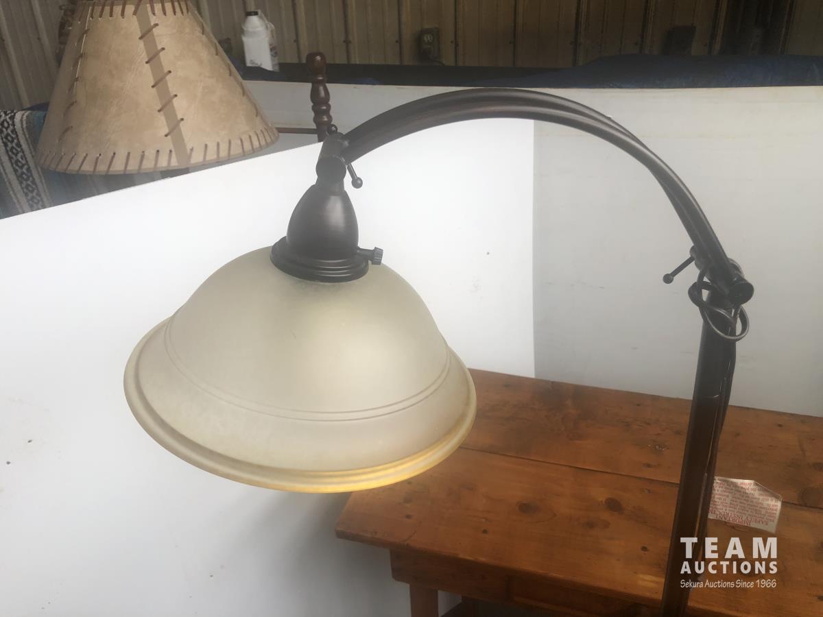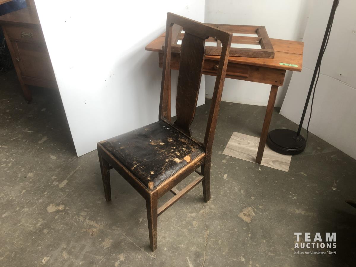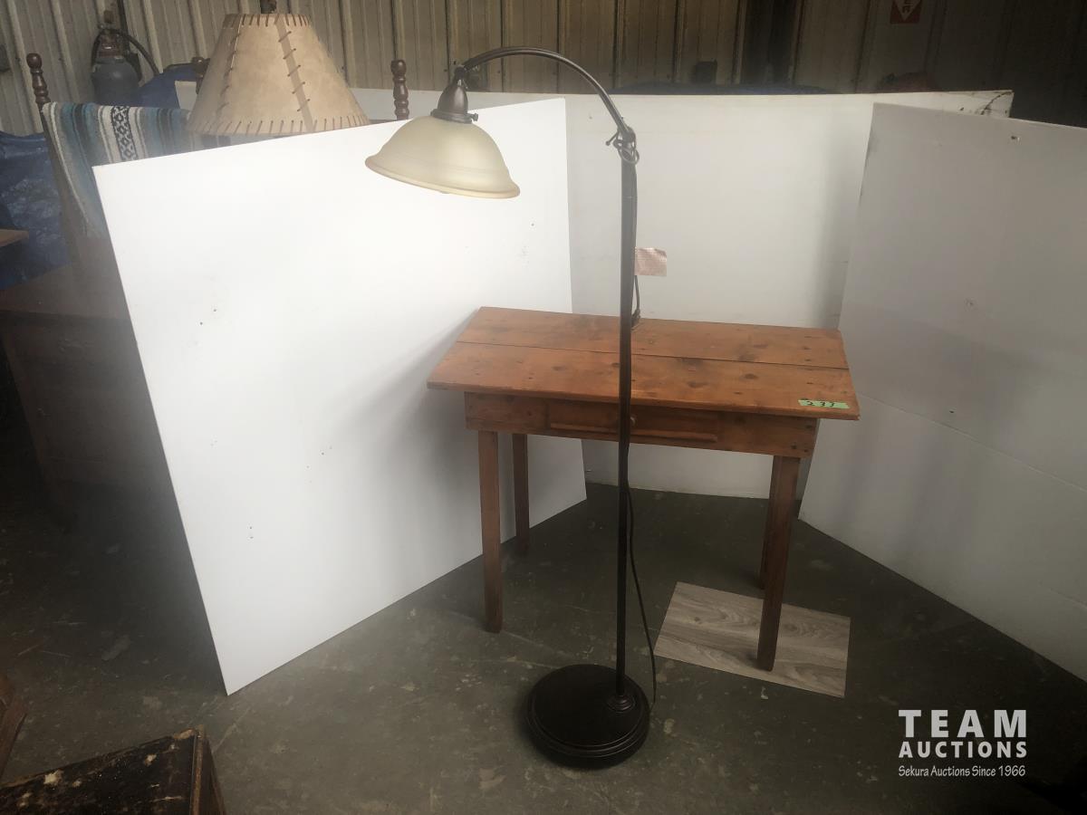 107 Antique Desk, Chair, Mirror & Floor Lamp