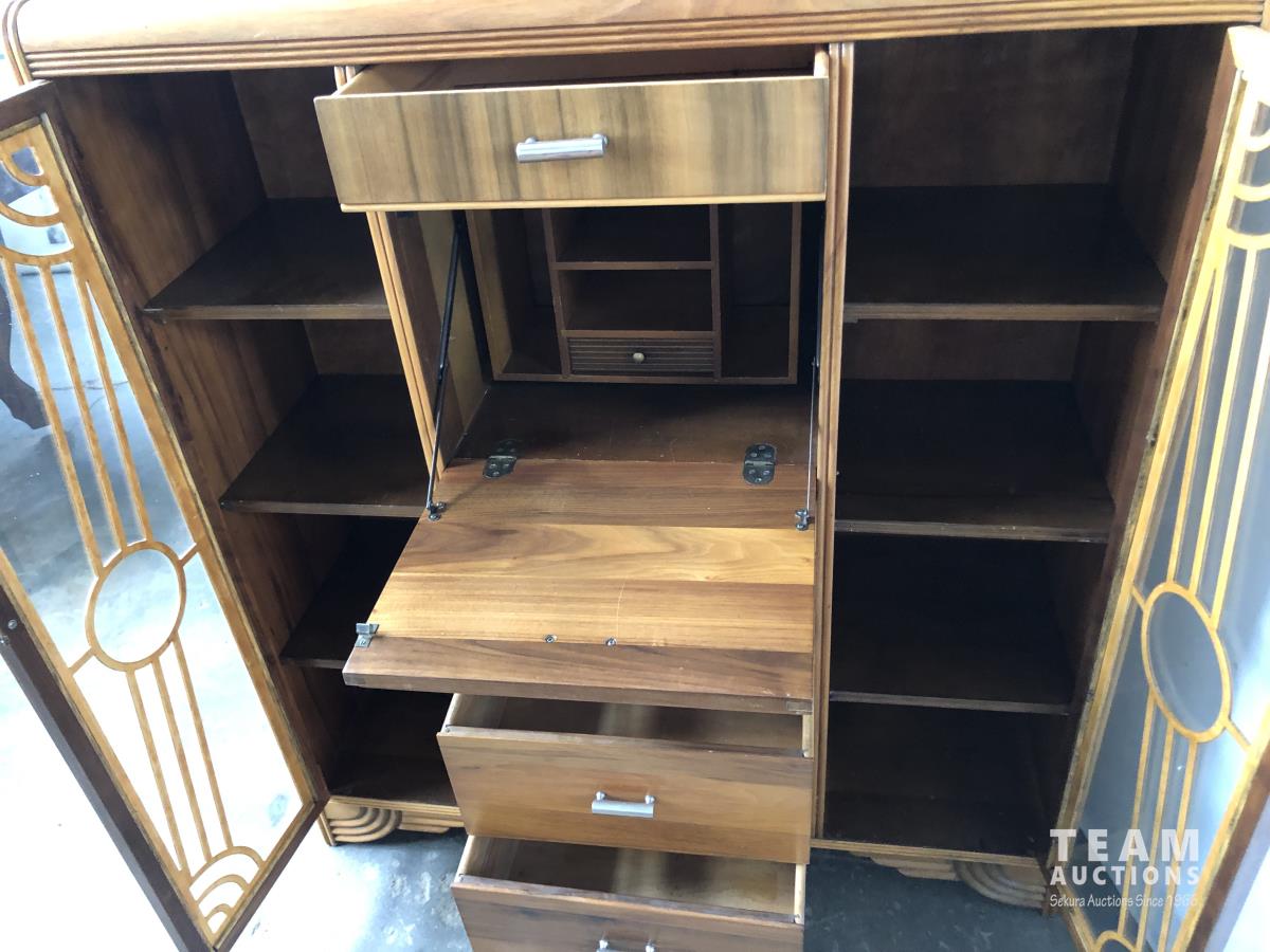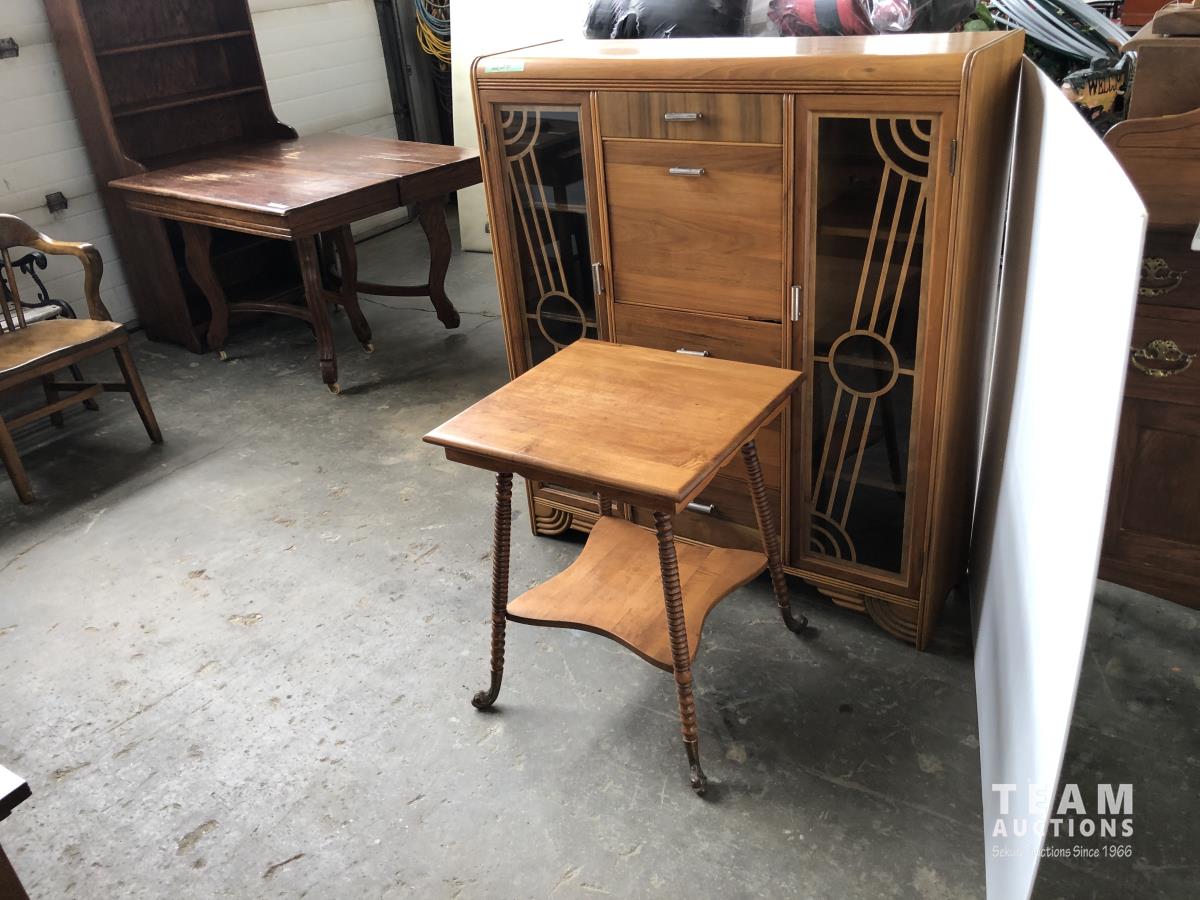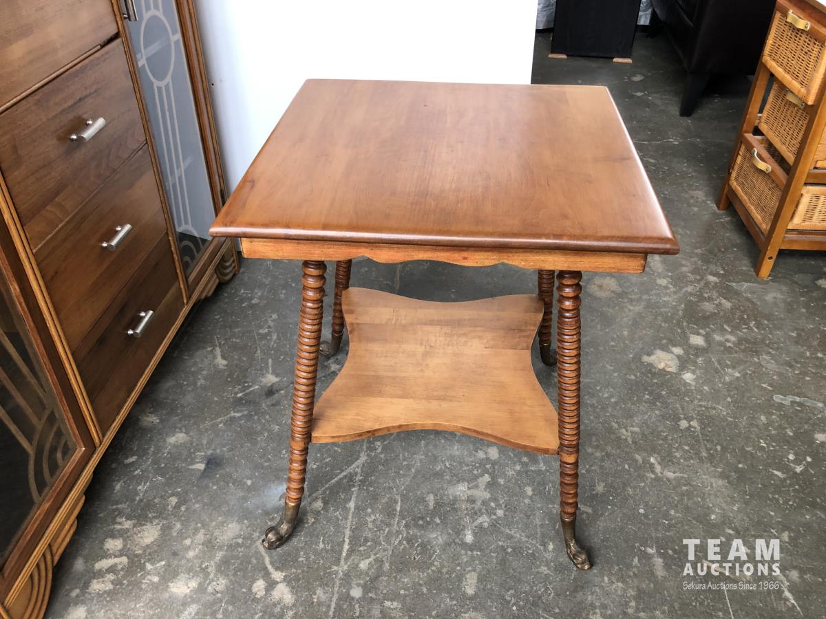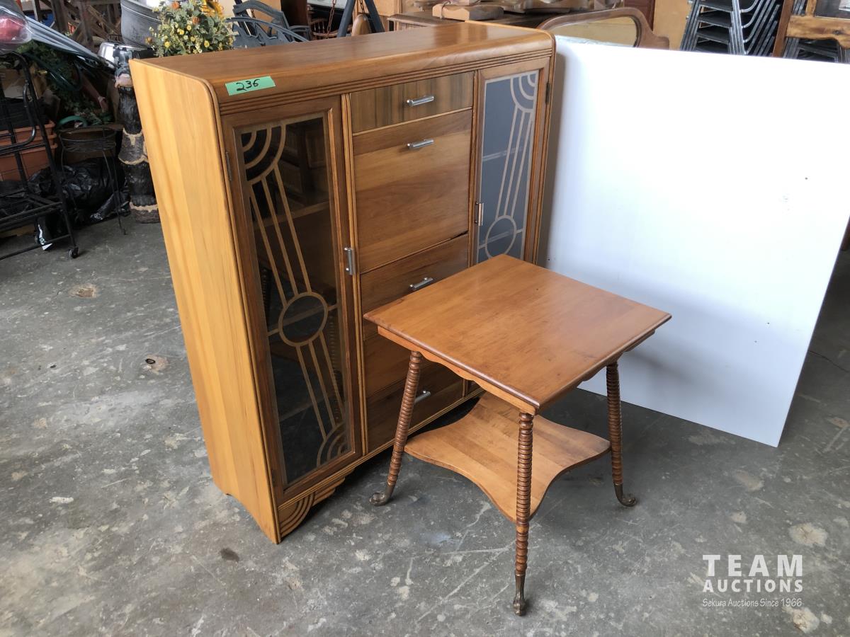 110 Antique Side Table W/ Brass feet & Antique Cabinet W/ Glass Doors