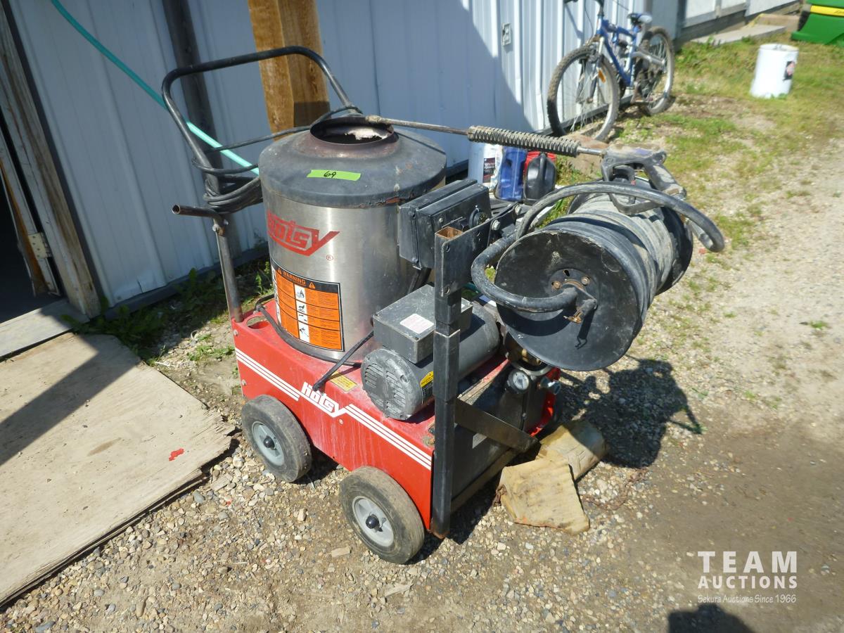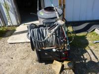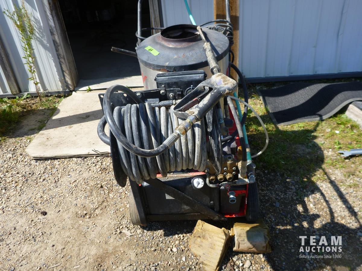 2 HP electric motor, 2.1 GPM, 1500 PSI, max temp 225 F, hose reel, hose & wand
