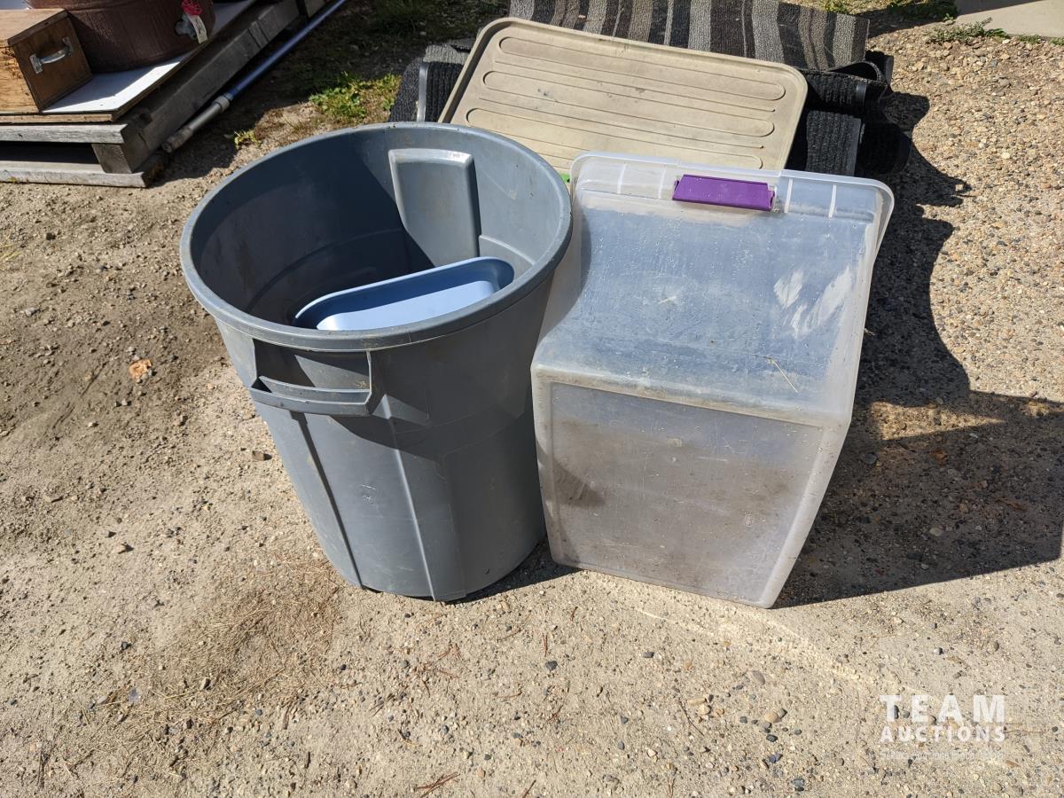 237 Floor Mats, Tote Bin & (2) Poly Garbage Cans
