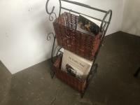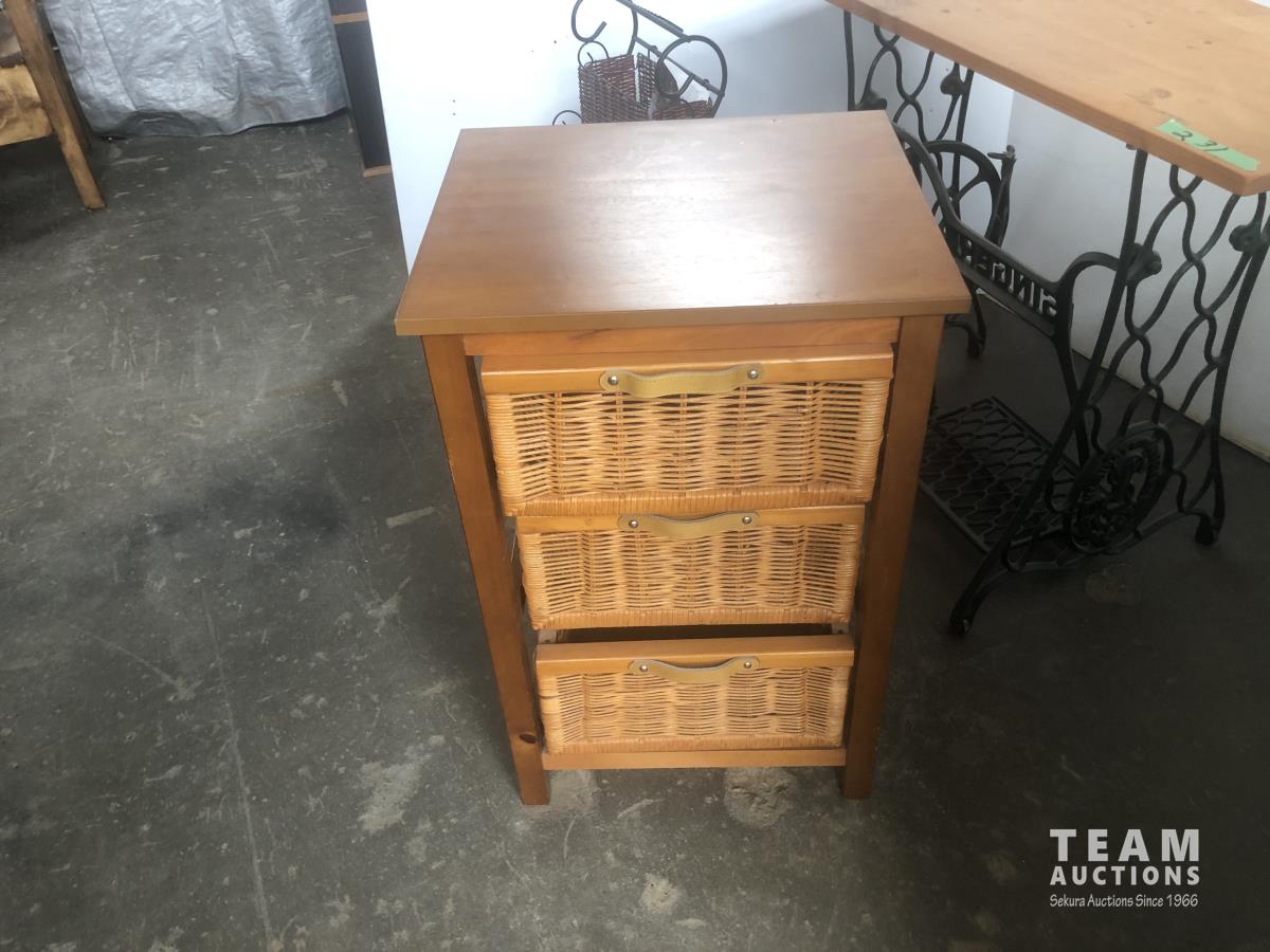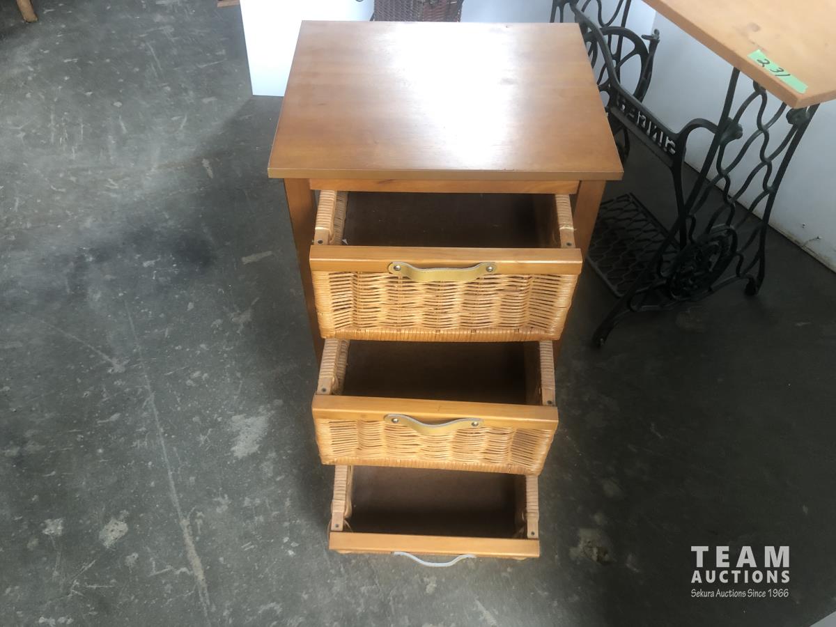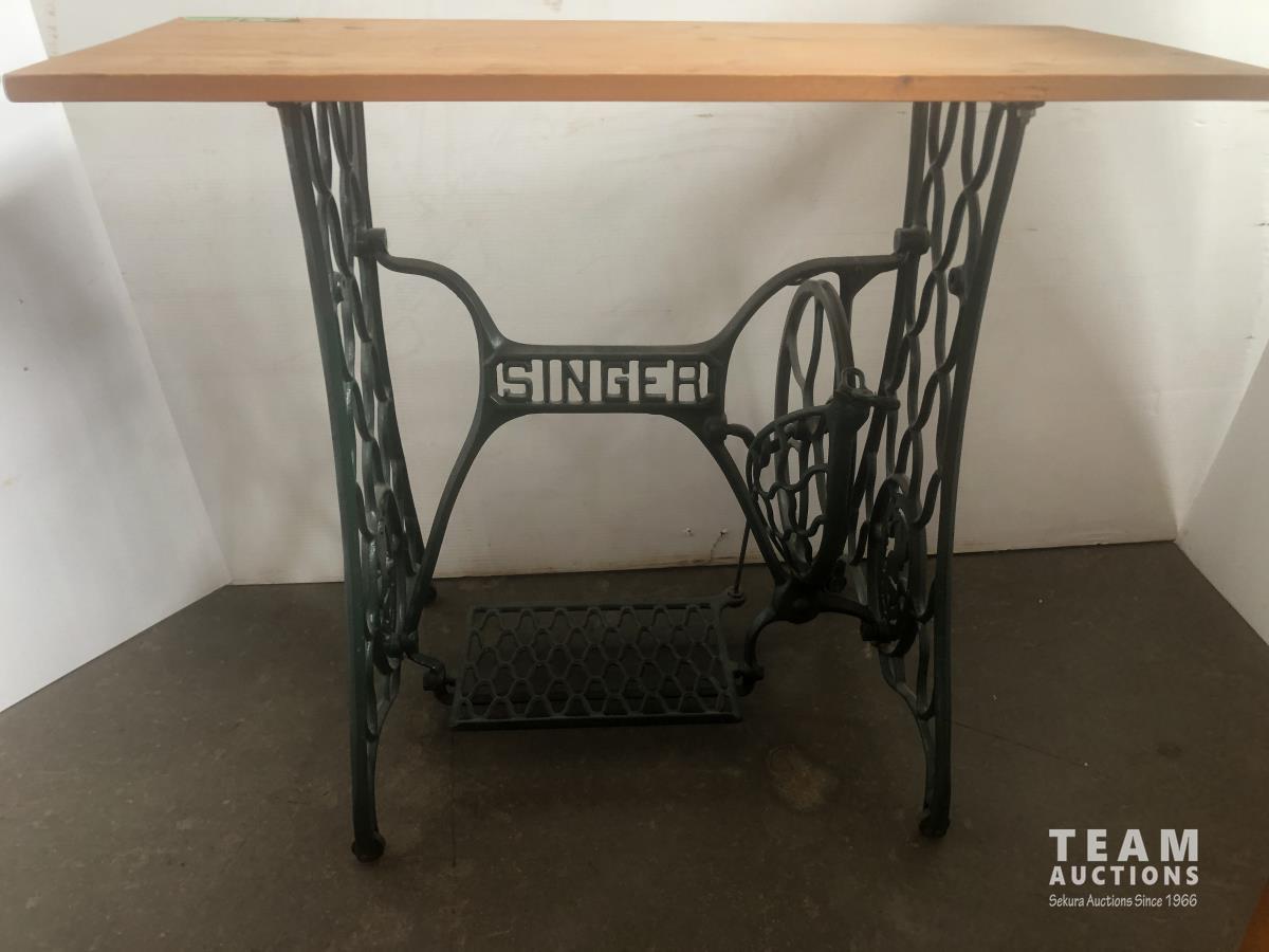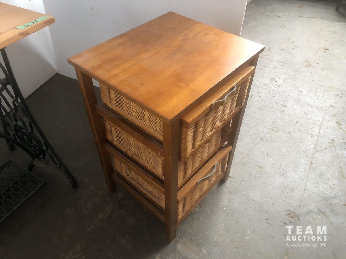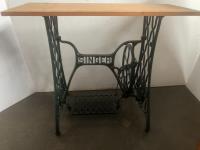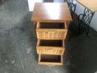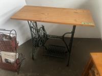 105 Magazine Stand, 3 Drawer End Table & Small table W/ old Singer Legs