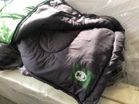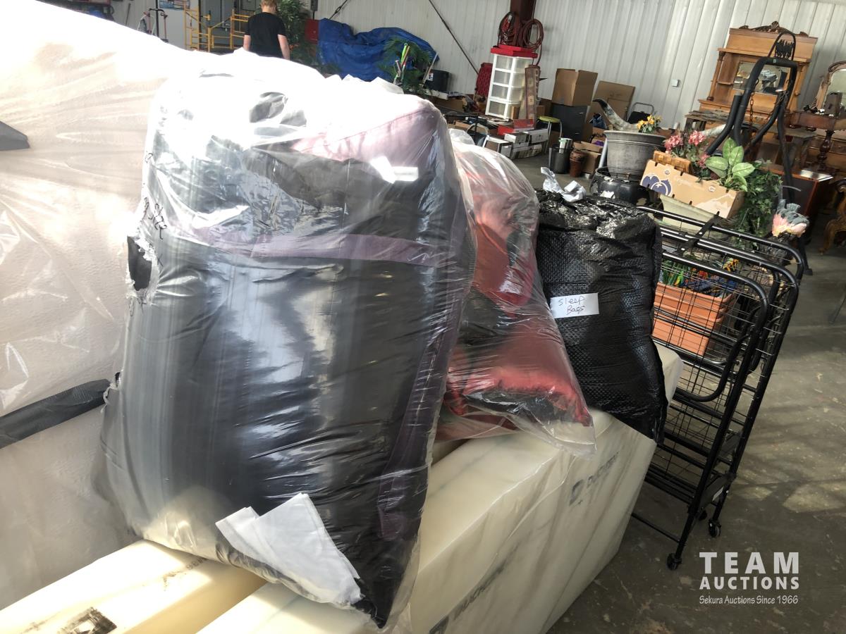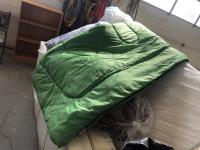 (2) folding cots w/ foam mattress, (3) bags of assorted bedding, sleeping bags & queen mattress